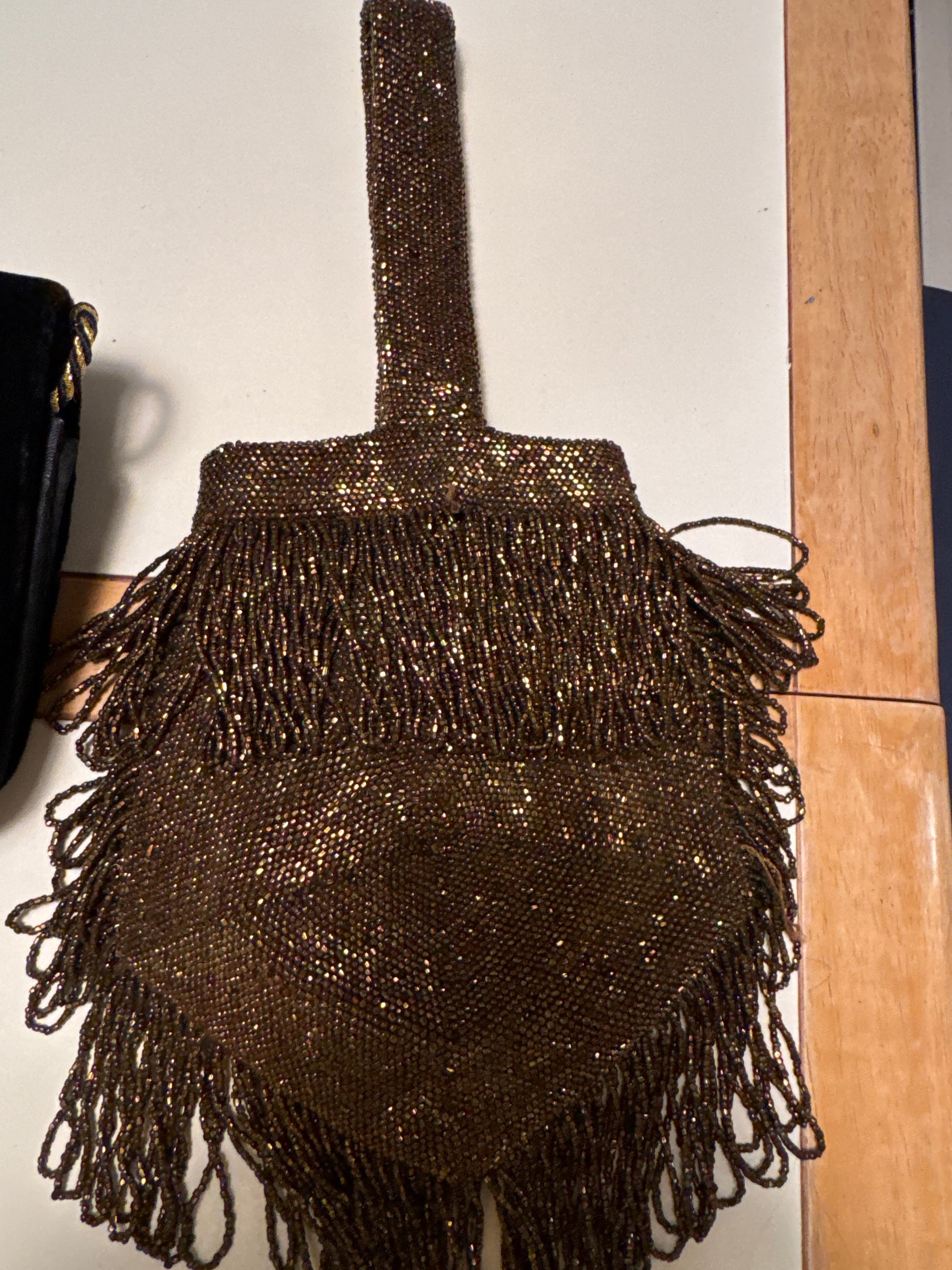 1930s bronze beaded bracelet handbag. Found in Paris.