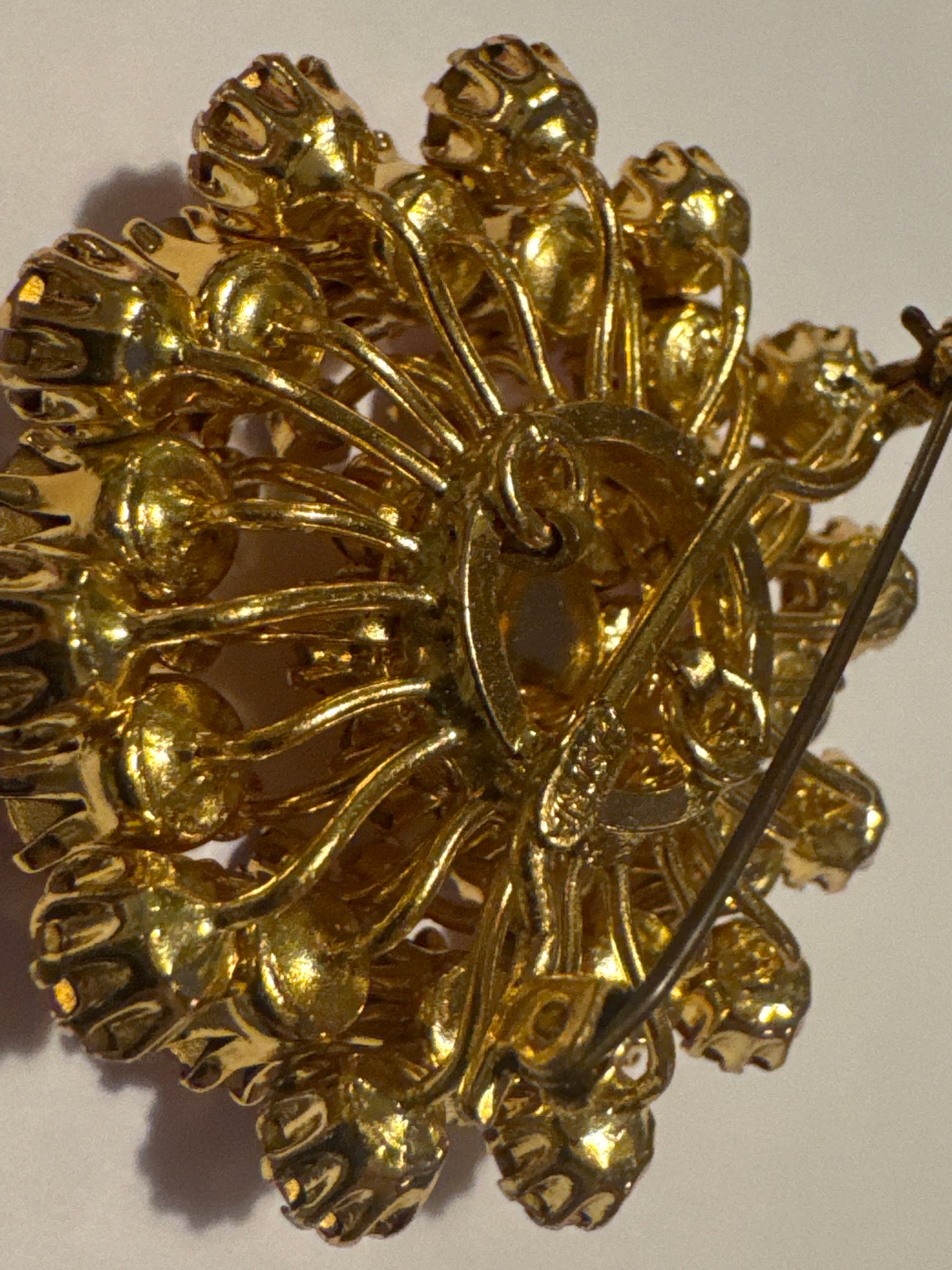 1940s beautiful signed Austrian cristal pink and light purple rhinestone brooch. Road