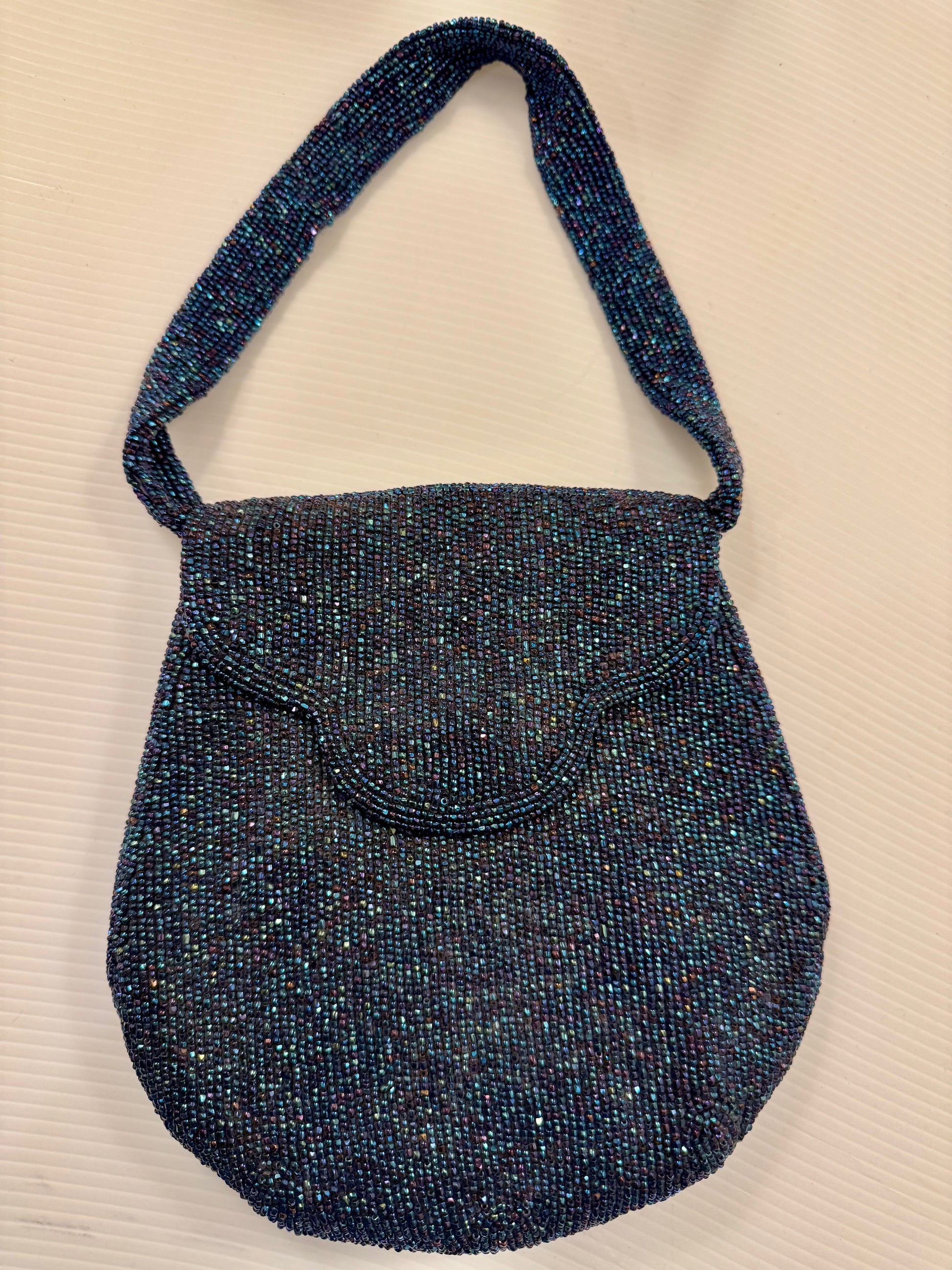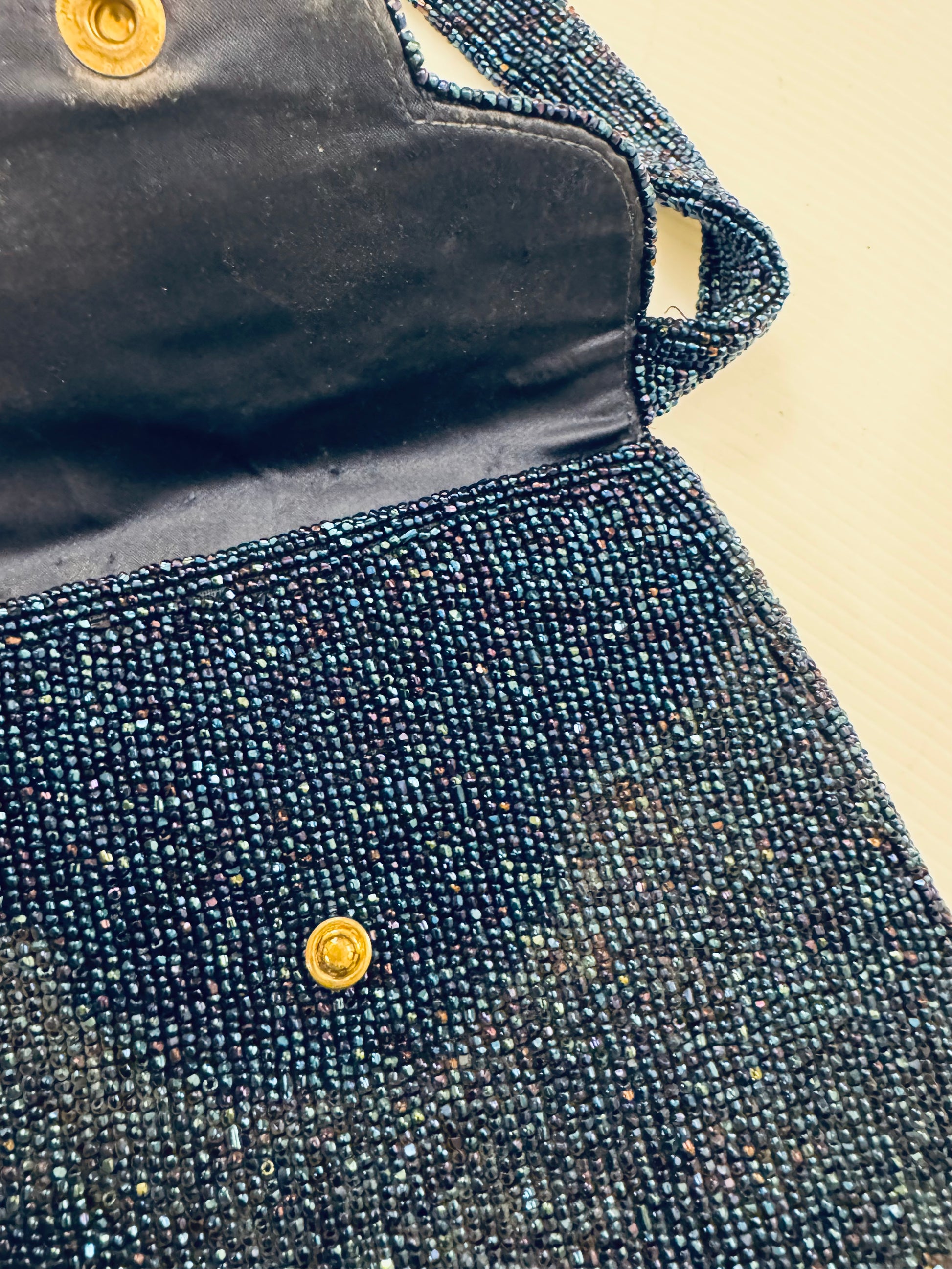 1940s blue beaded handbag with original coin purse