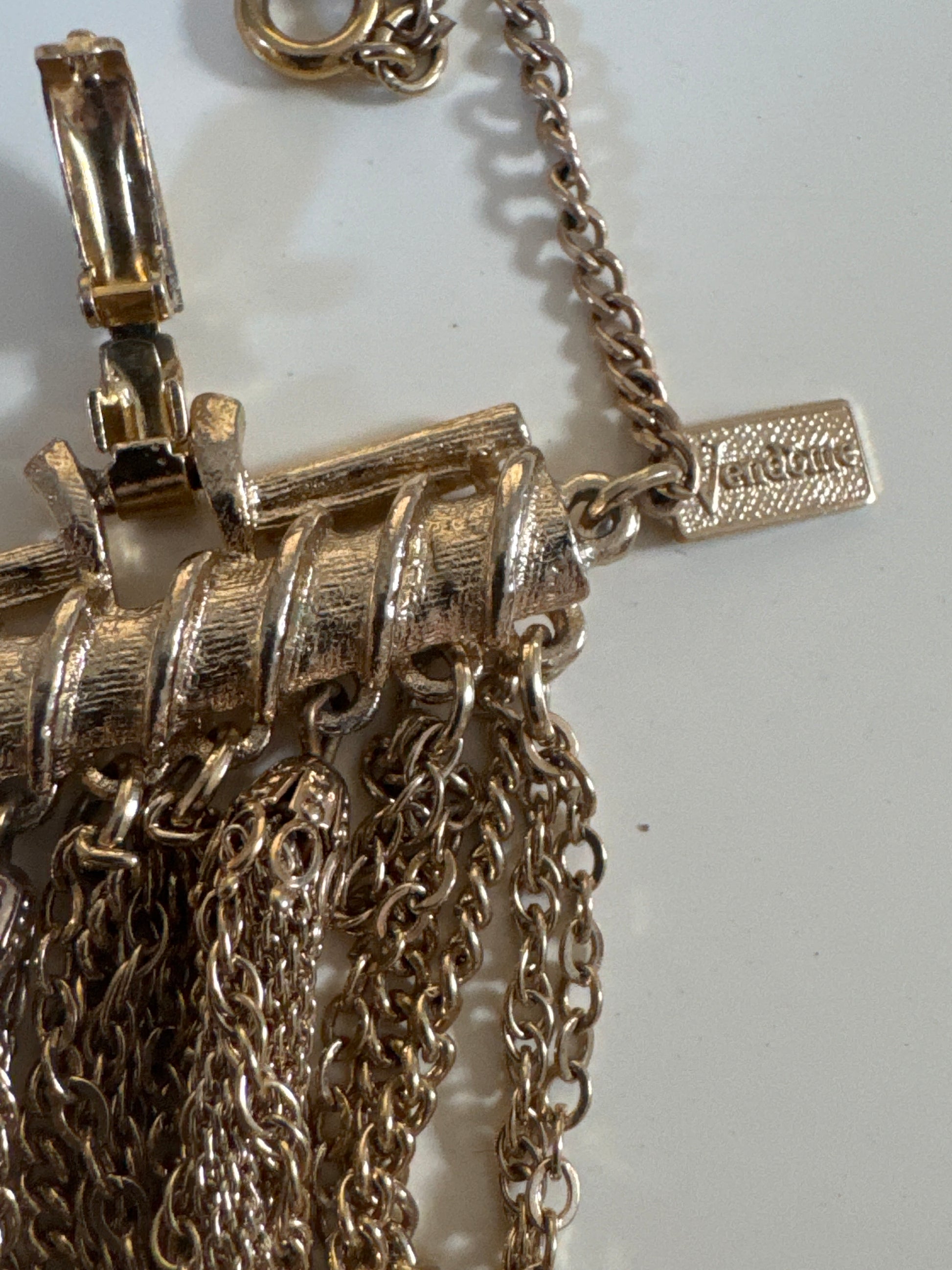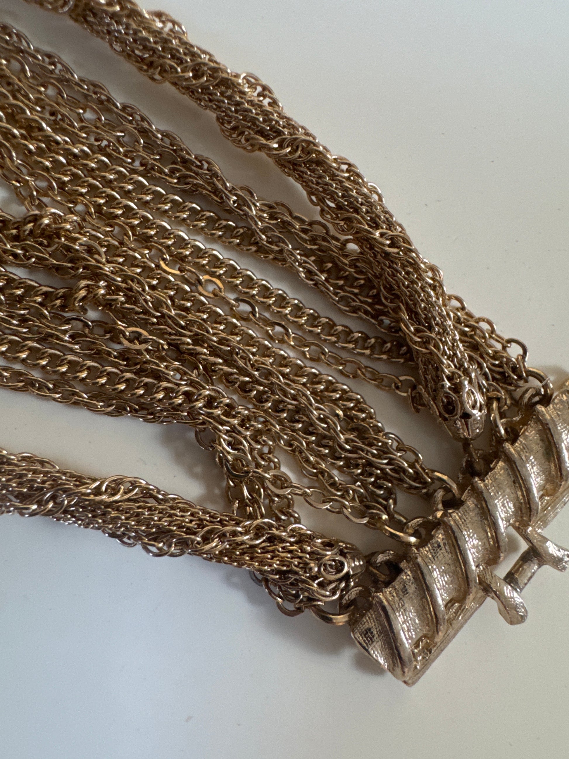 1940s signed Vendome multi strand gold tone bracelet. Search "Vendome" to see matching necklace