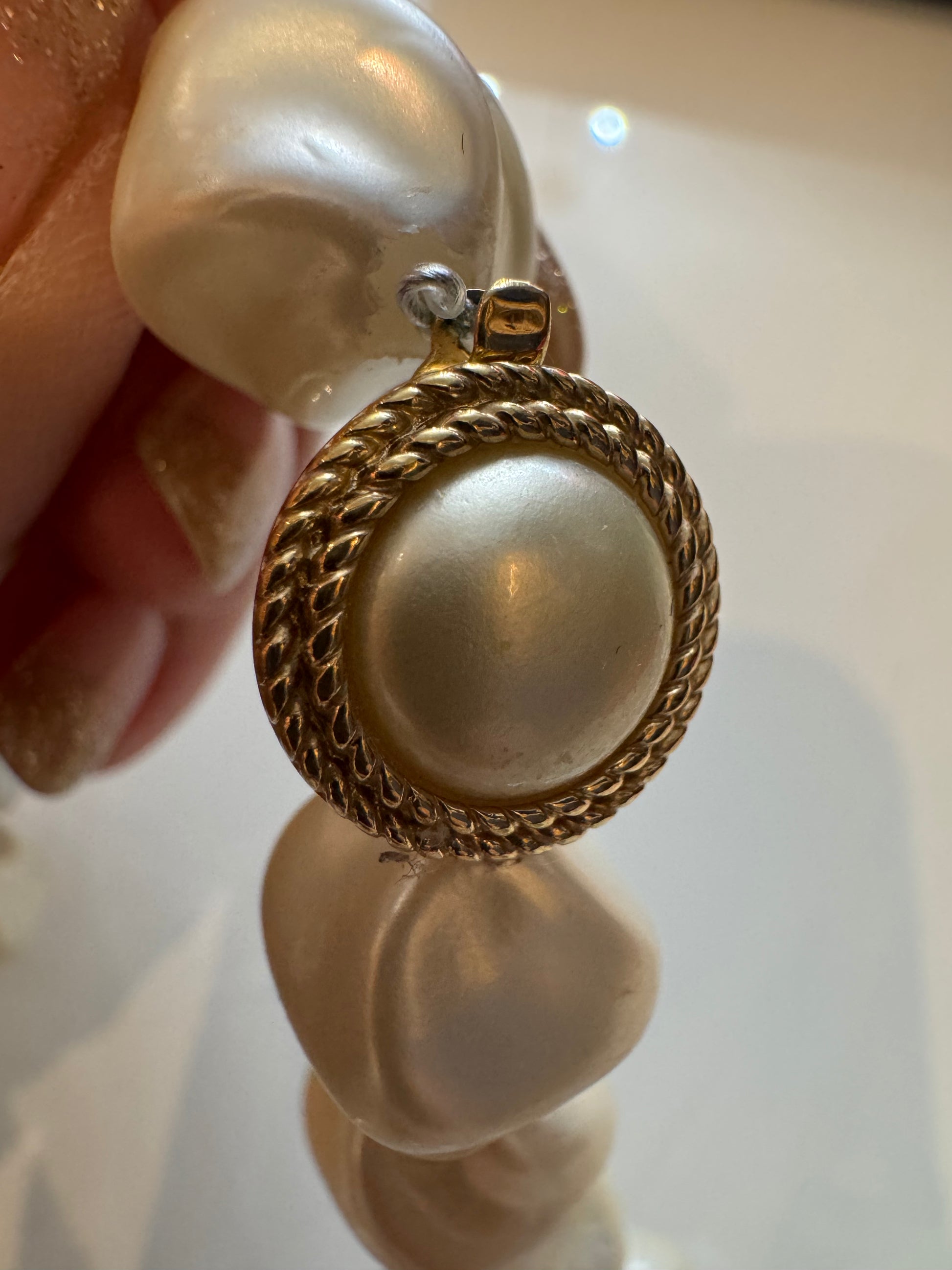 1960s stunning, rare signed Trifari long strand of jumbo pearls with fabulous gold tone and rhinestone beads