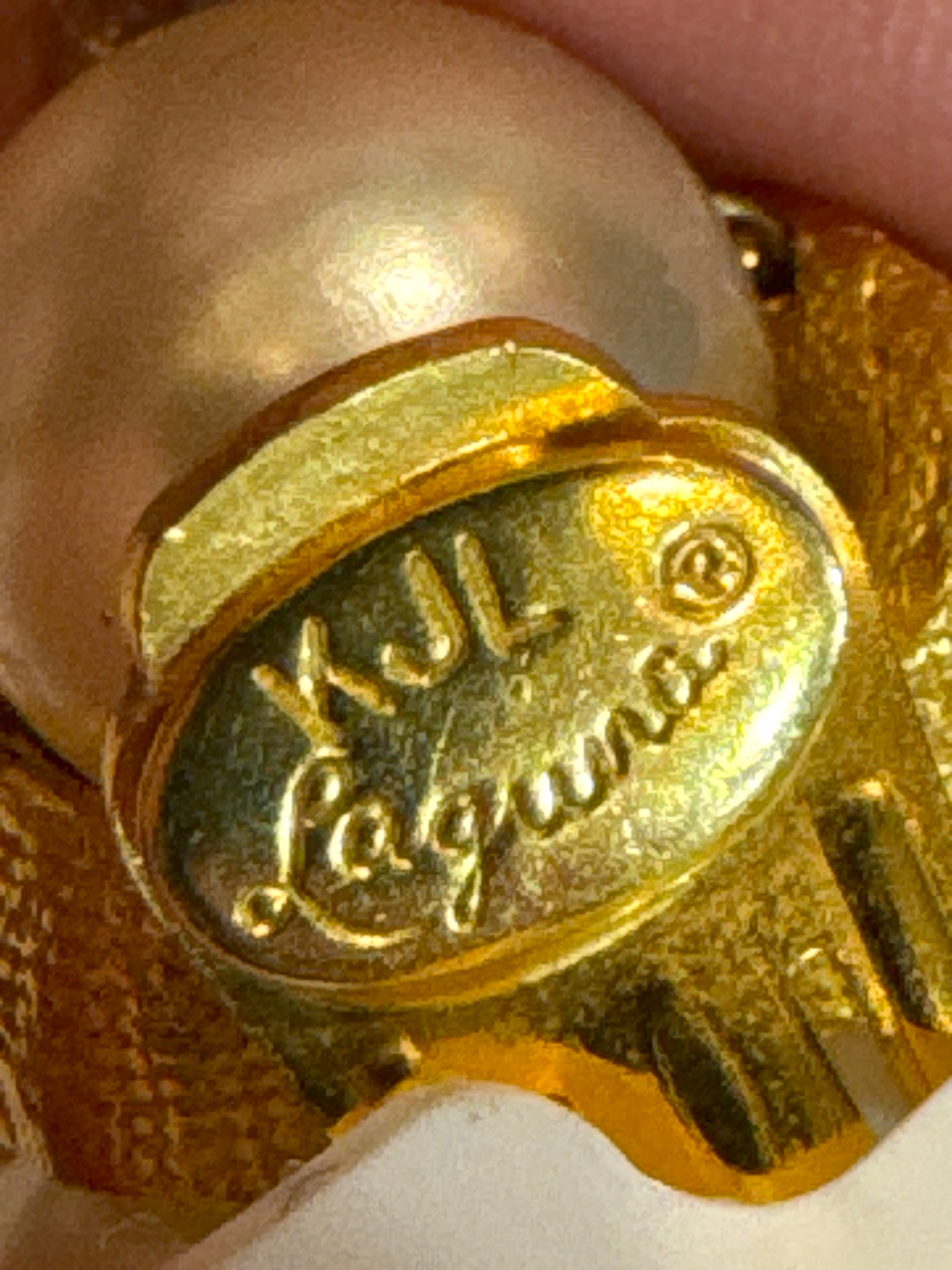 1970s stunning, oversized, pearl hoop, earrings, signed KJL Laguna