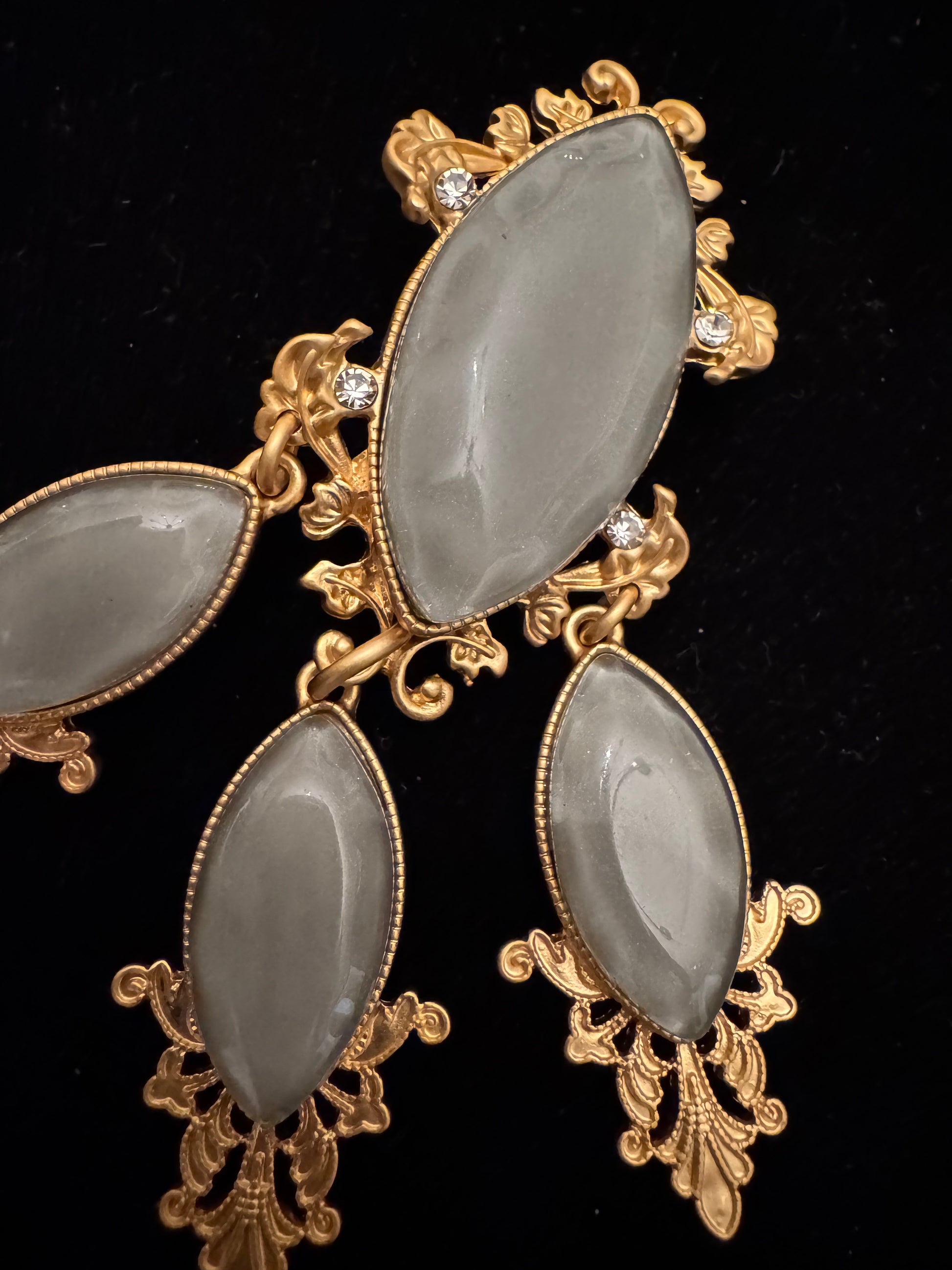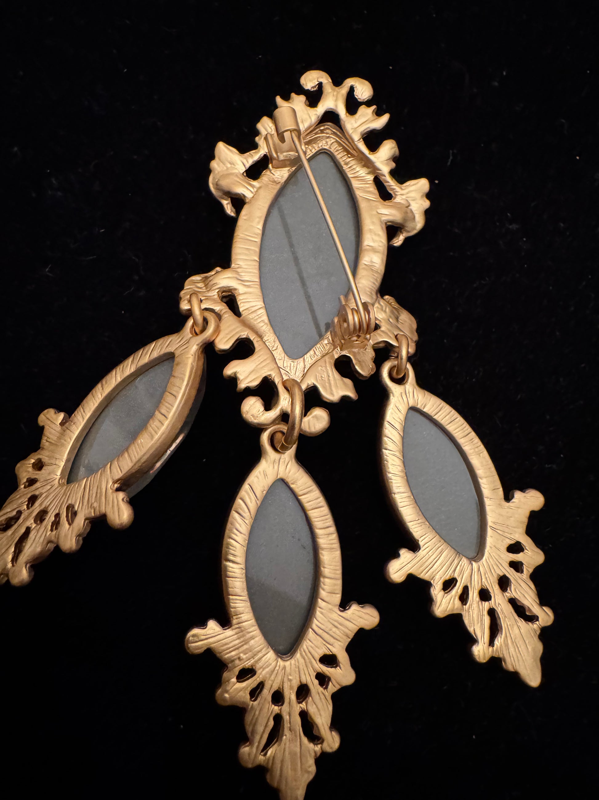 1990s jumbo lightweight, gold tone brooch with greenish Grey stones. France