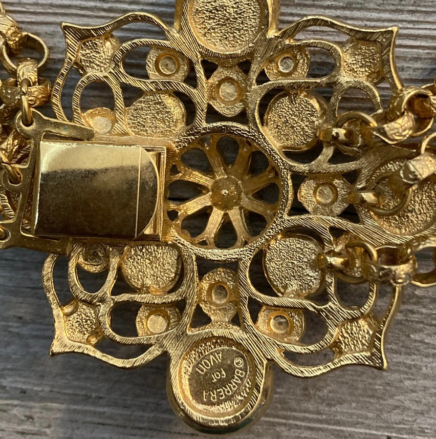 1970/80 Vintage Barrera For Avon Massive Gold With Pink And Purple Cabochons Statement Necklace.