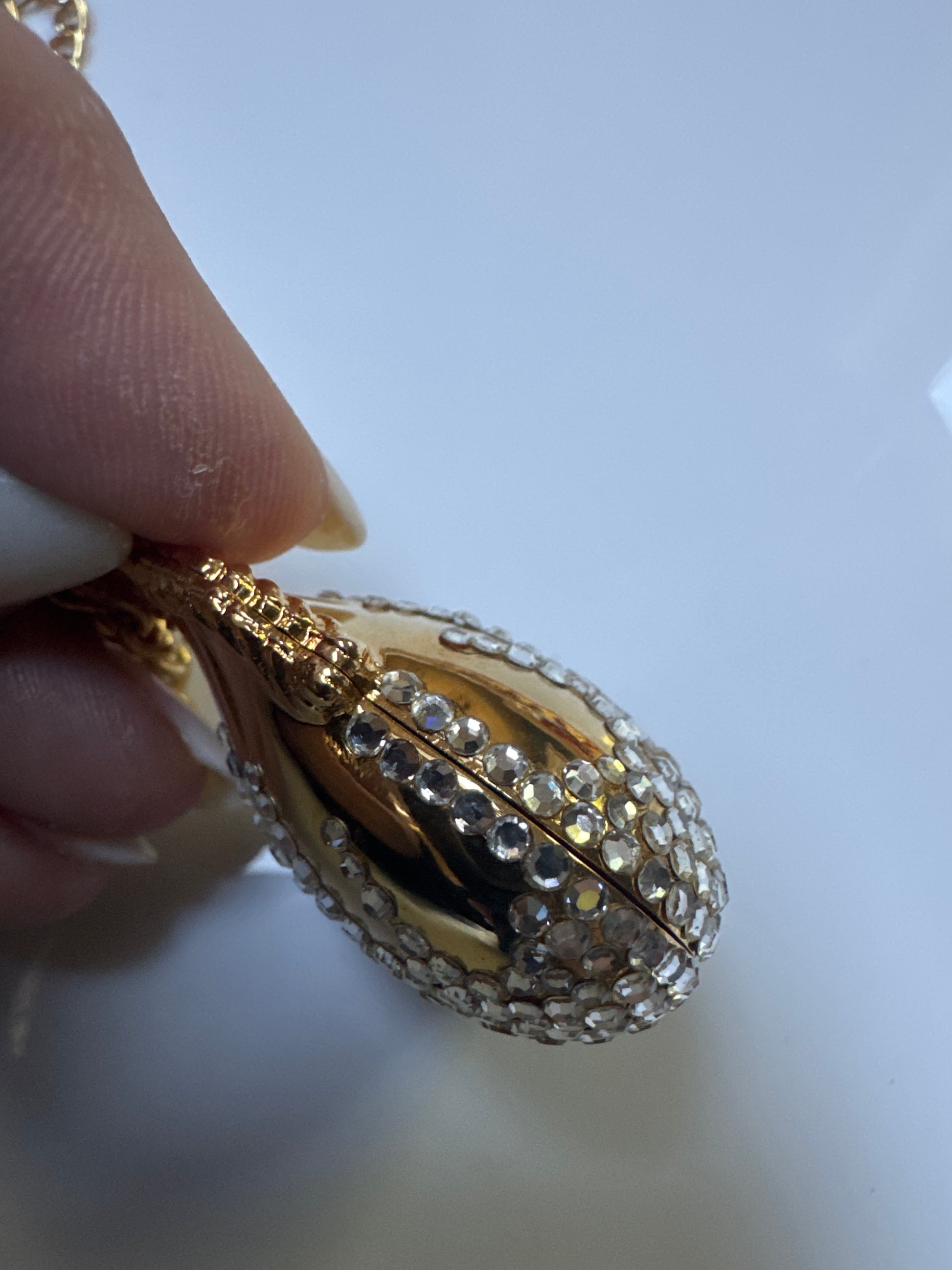 adorable 1980s must have pendant necklace by Judith Lieber. This collectible purse on a chain that opens is decorated with rhinestones.
