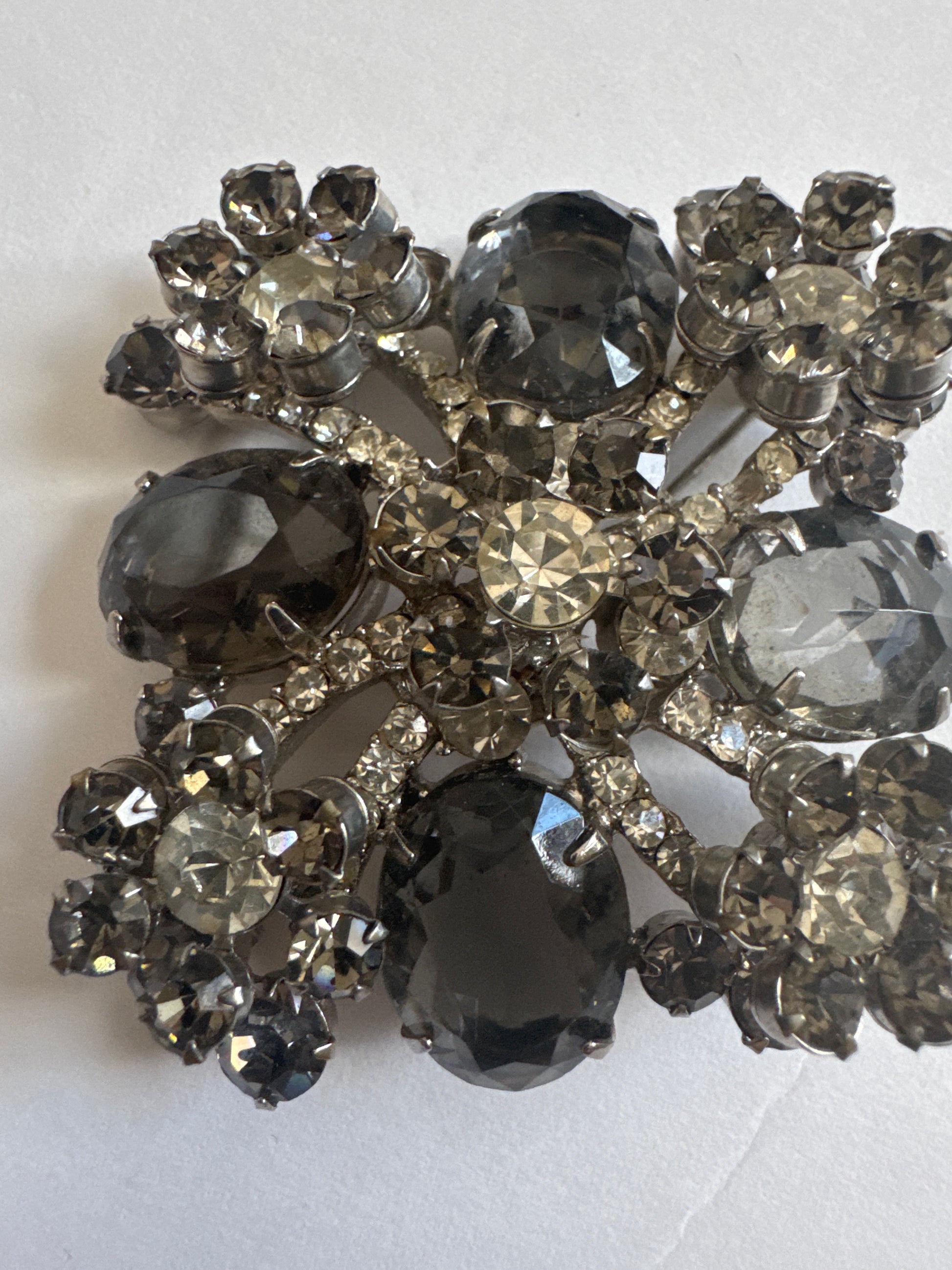 Beautiful 1950s smoky gray multi layered brooch by D & E