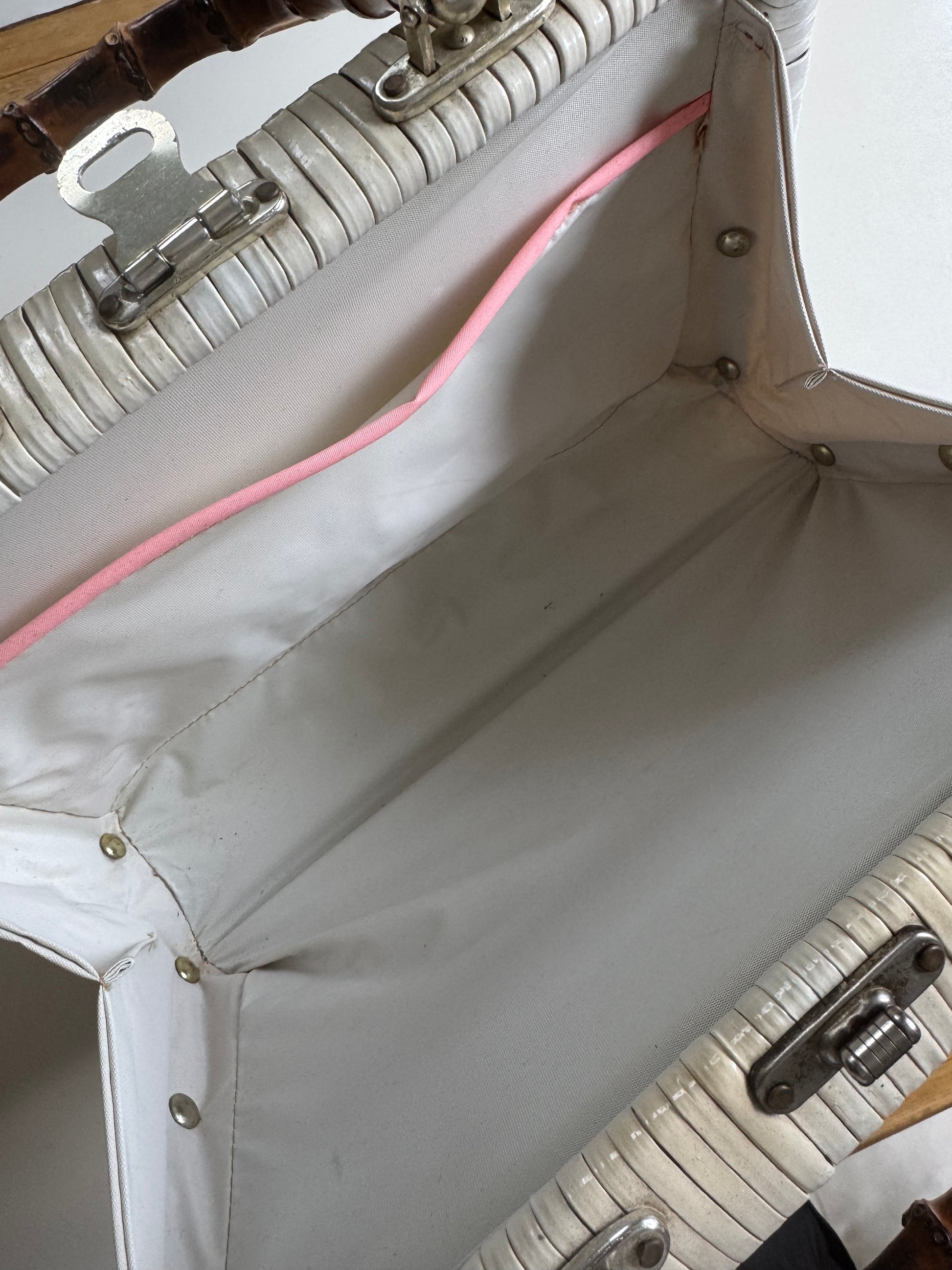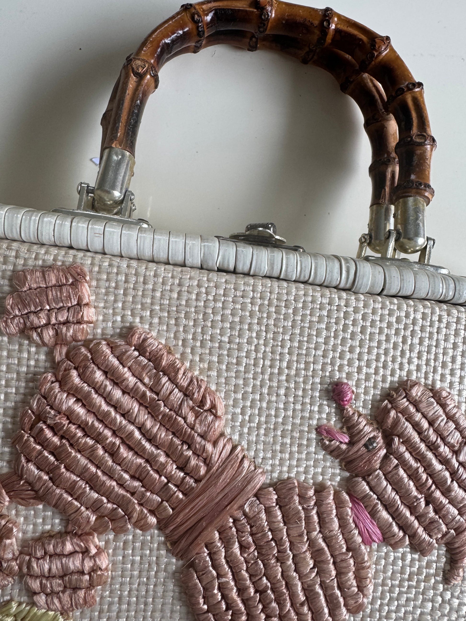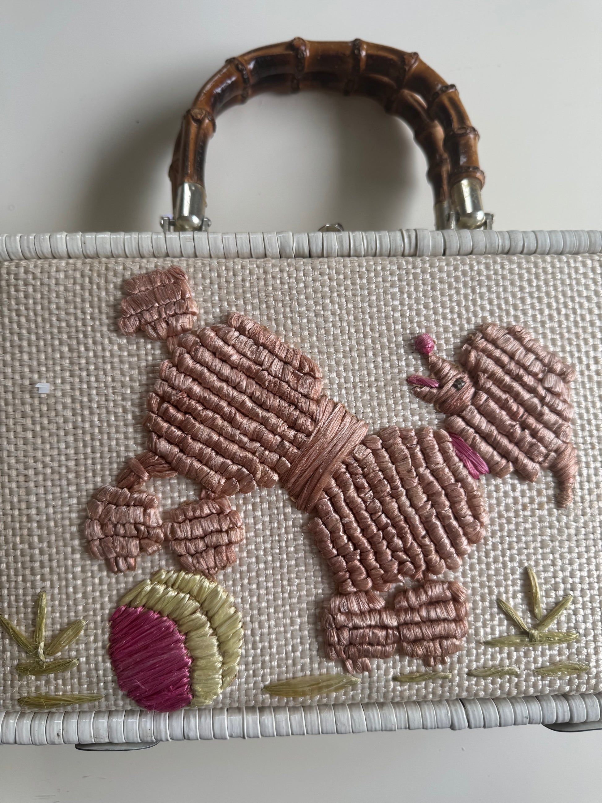 Beautiful 1950s wicker poodle bag with bamboo handles in mint condition