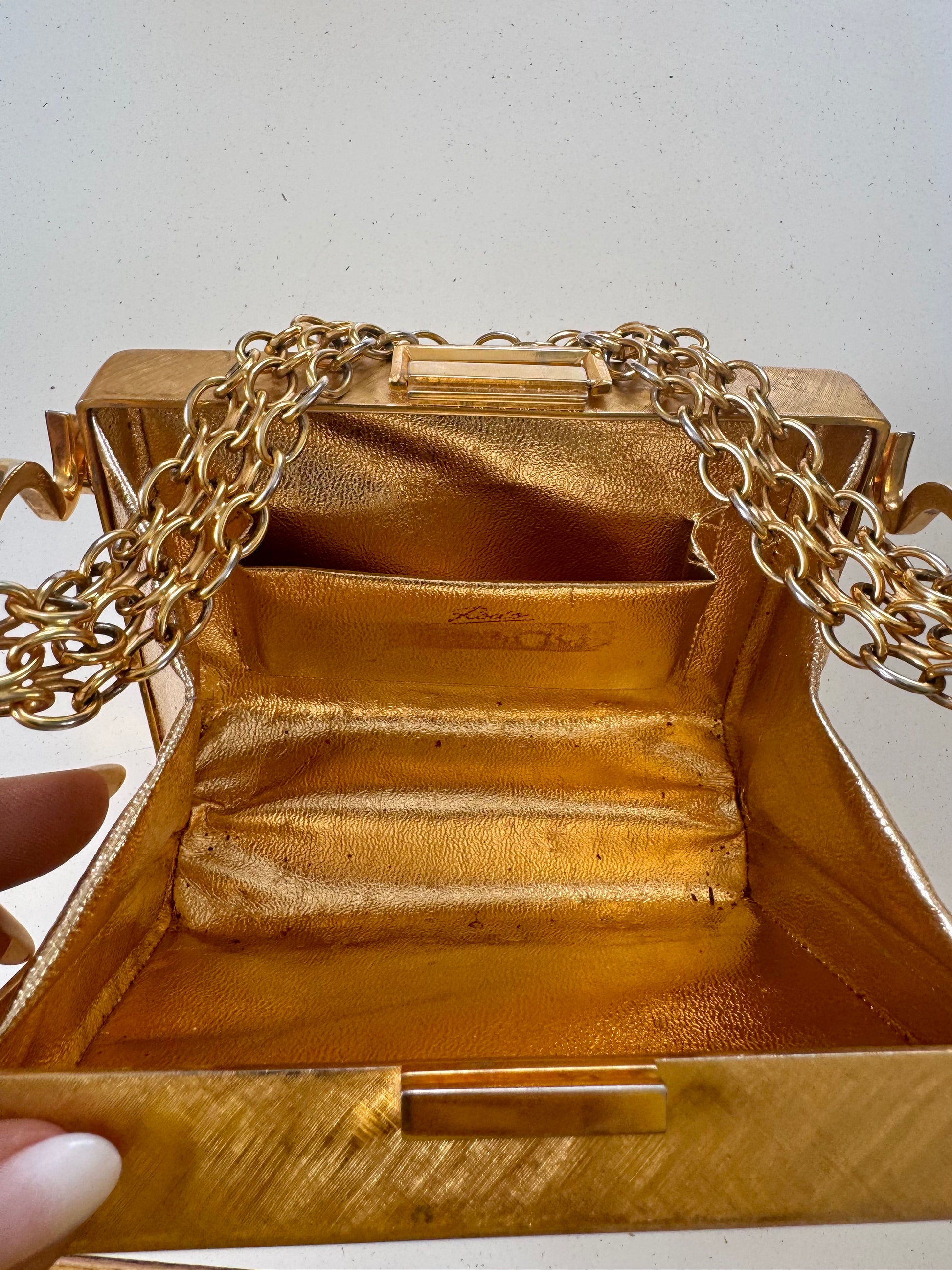 Beautiful 1960s hard top gold tone top handle bag with incredible chain handle