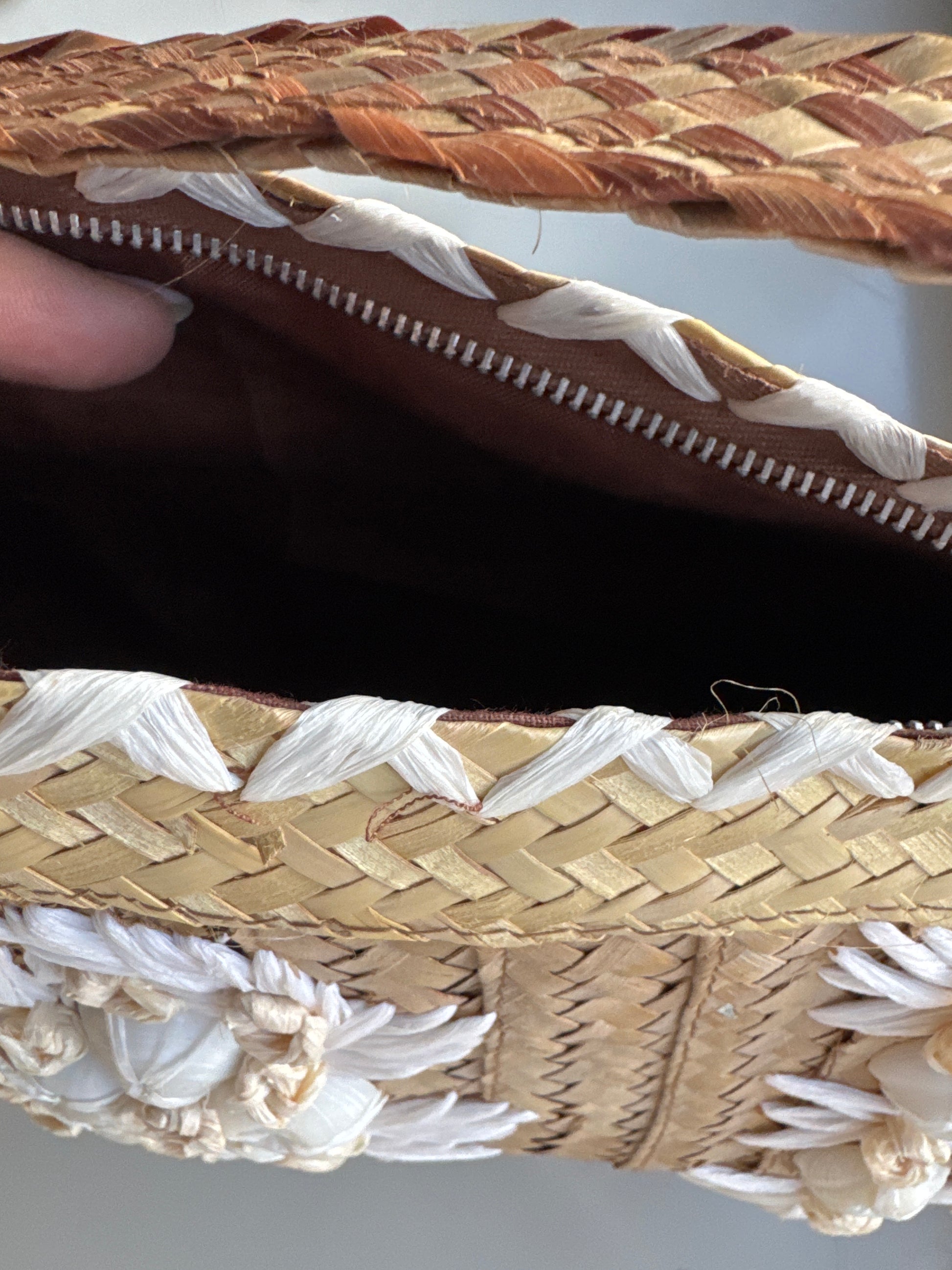 Beautiful 1960s never worn wicker bag with Shell beads beads and Raffia. Tom