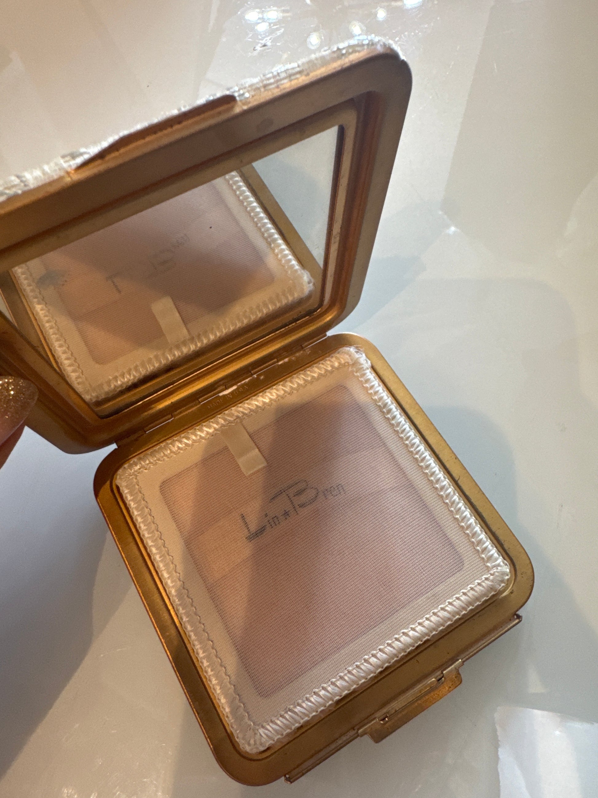 Beautiful brocade, Makeup, compact and coin purse with slide lock. Designed in the 1950s by LIN BREN.