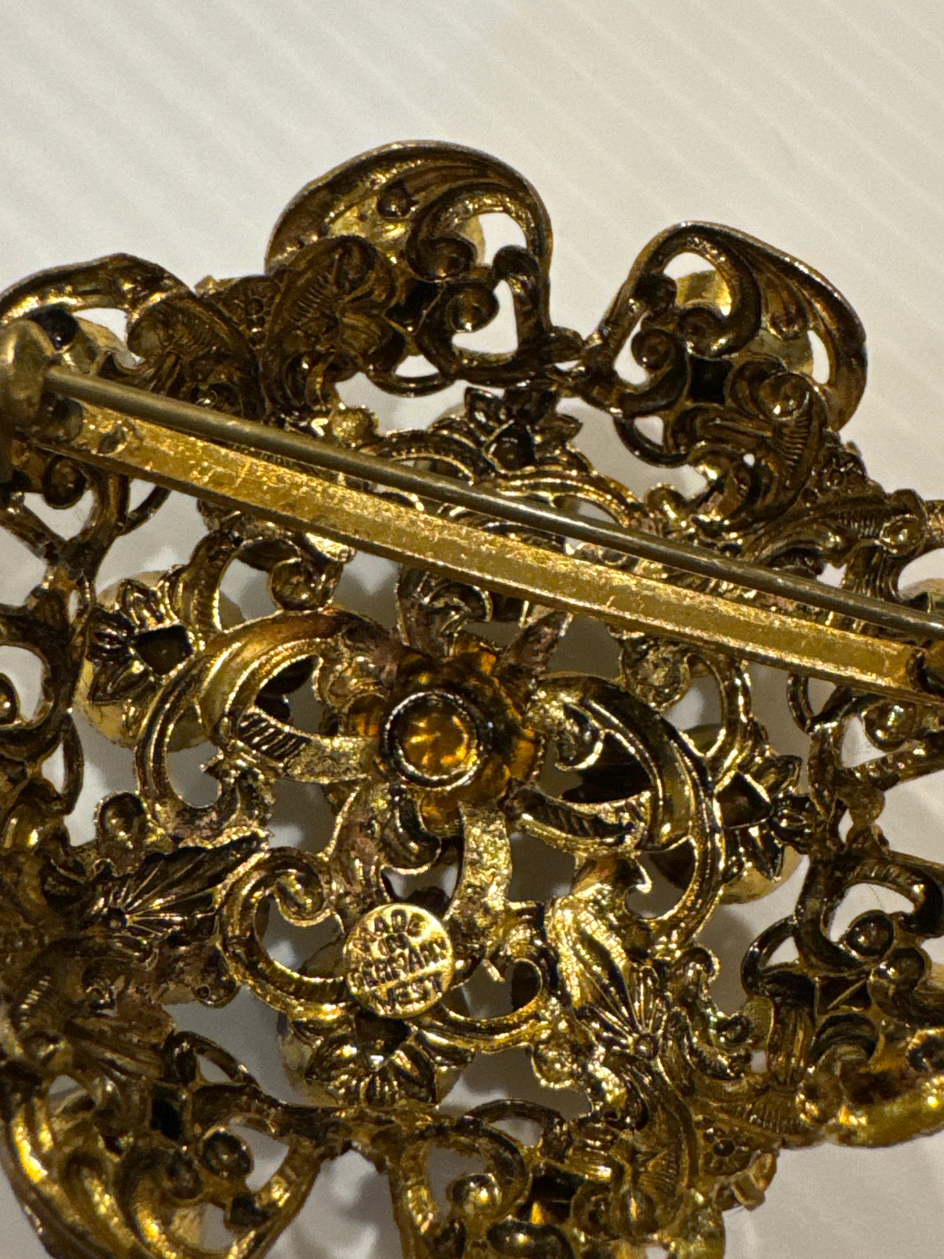 Beautiful jewel, toned rhinestone glass brooch made in West Germany