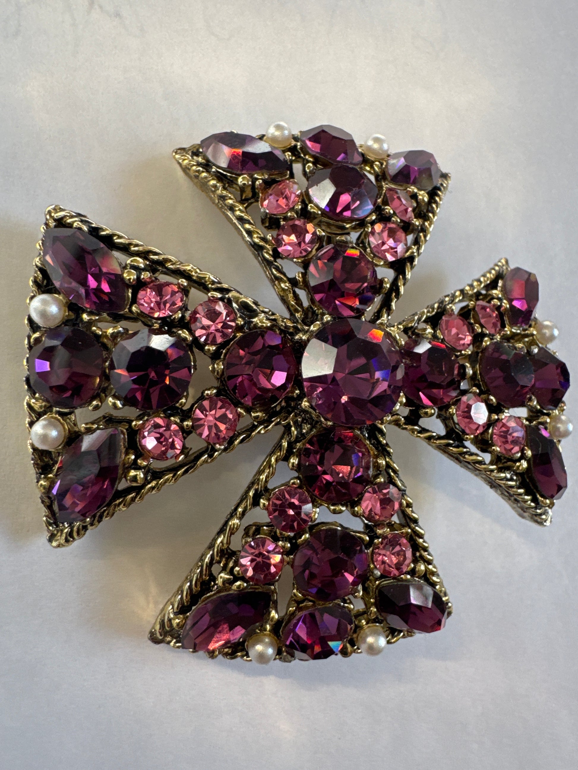 Beautiful purple rhinestone, Maltese cross brooch/pendant. Road