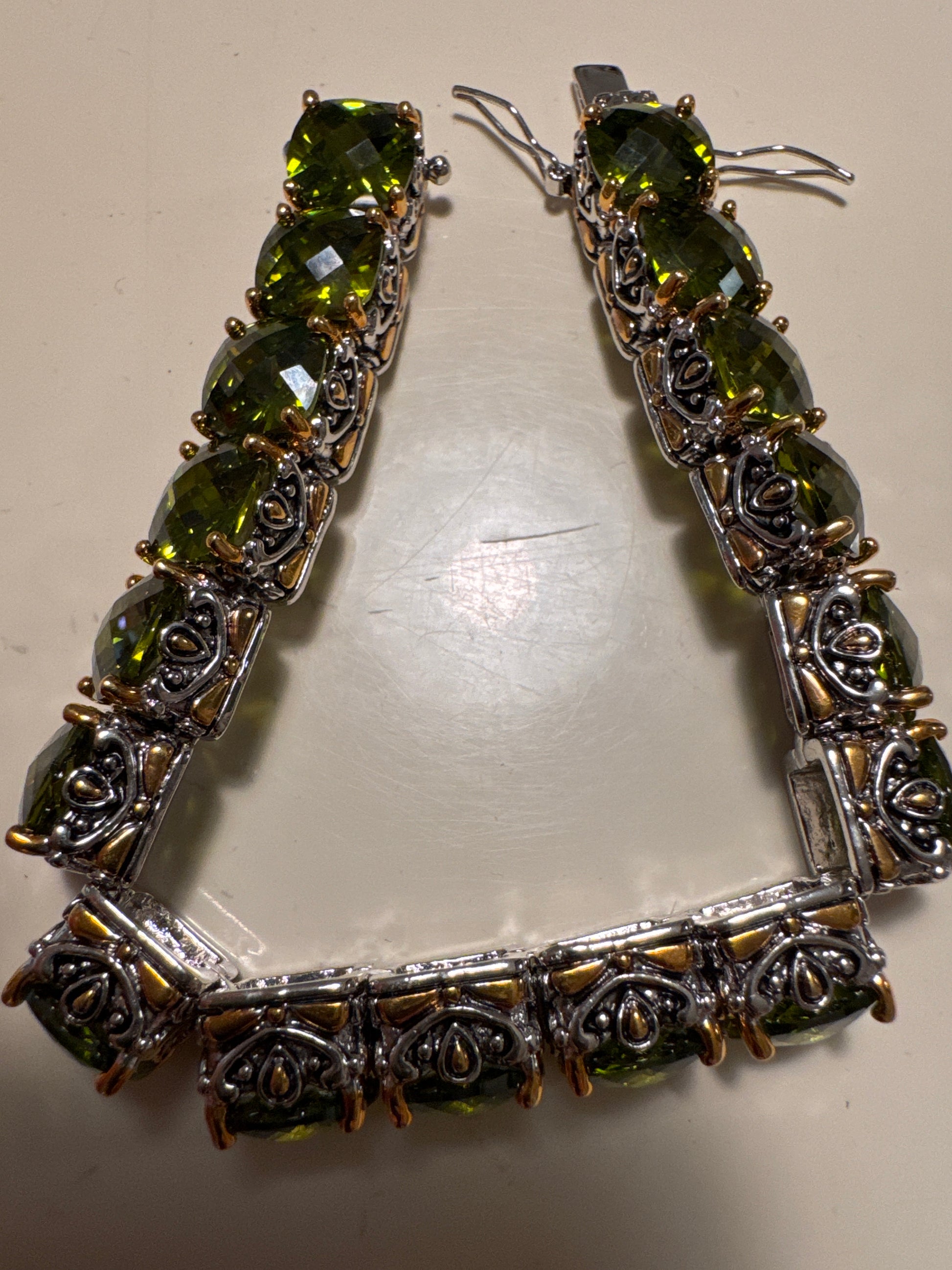 Beautiful, signed Park Lane bracelet olive colored rhinestones on a silver rhodium and gold to base grade measure 7 inches