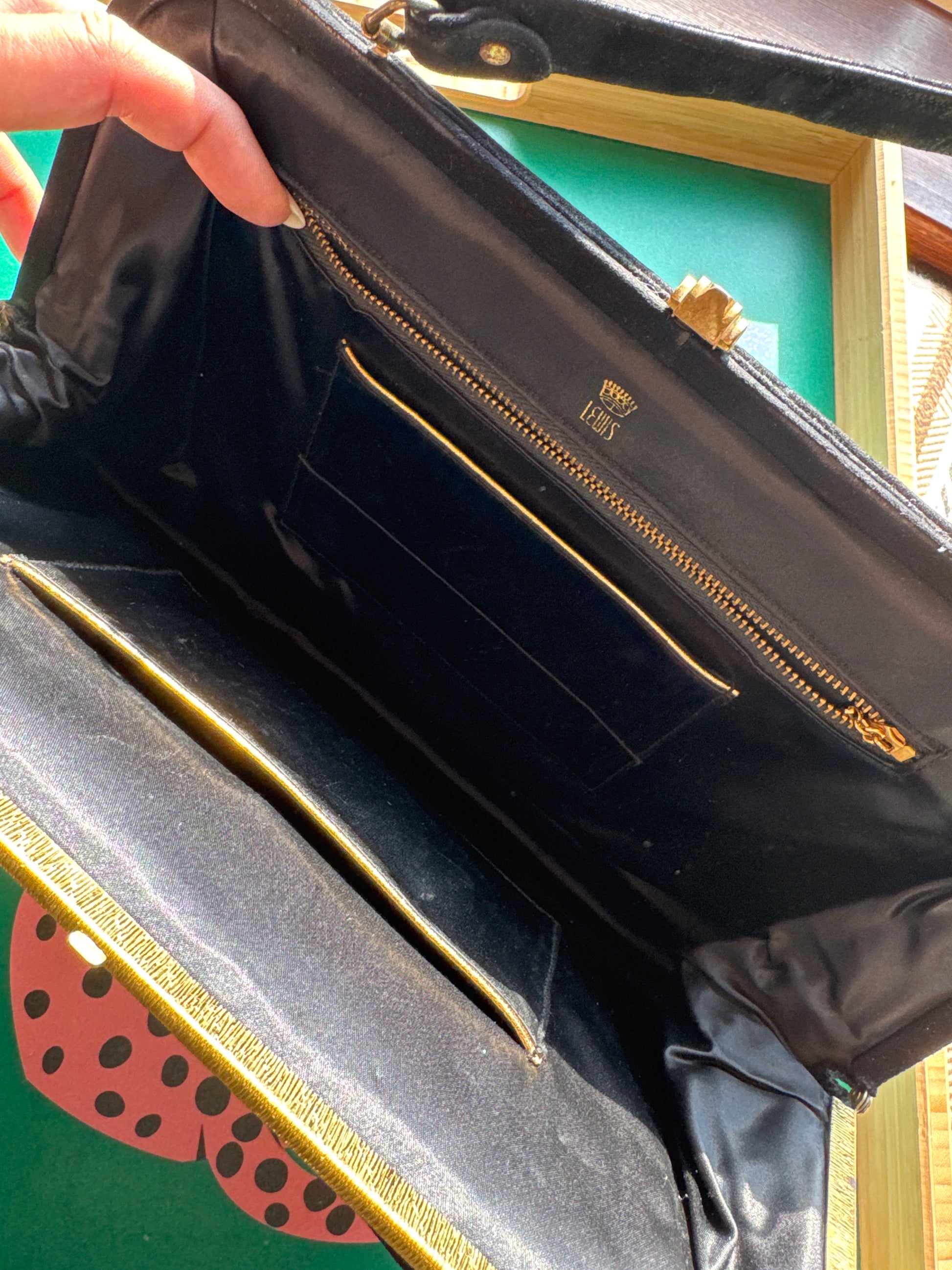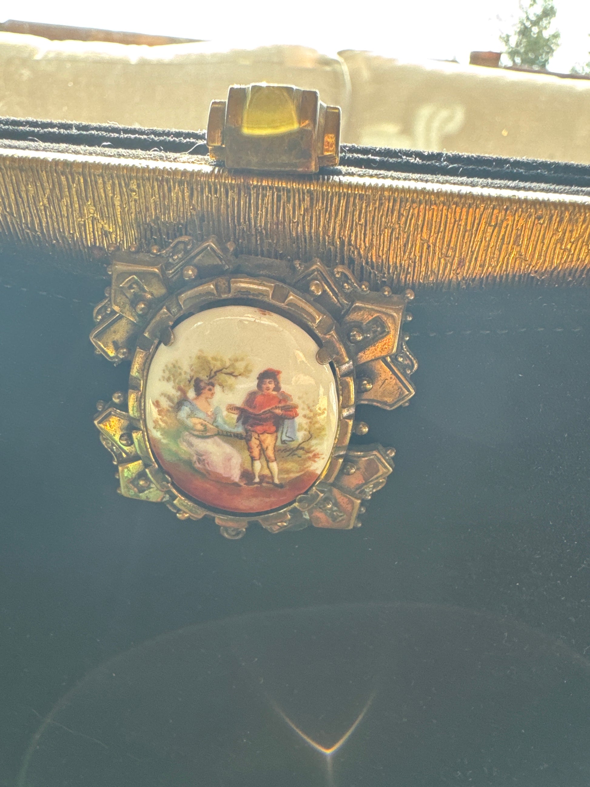 Beautiful vintage evening black velvet 1950s cameo clasp handbag