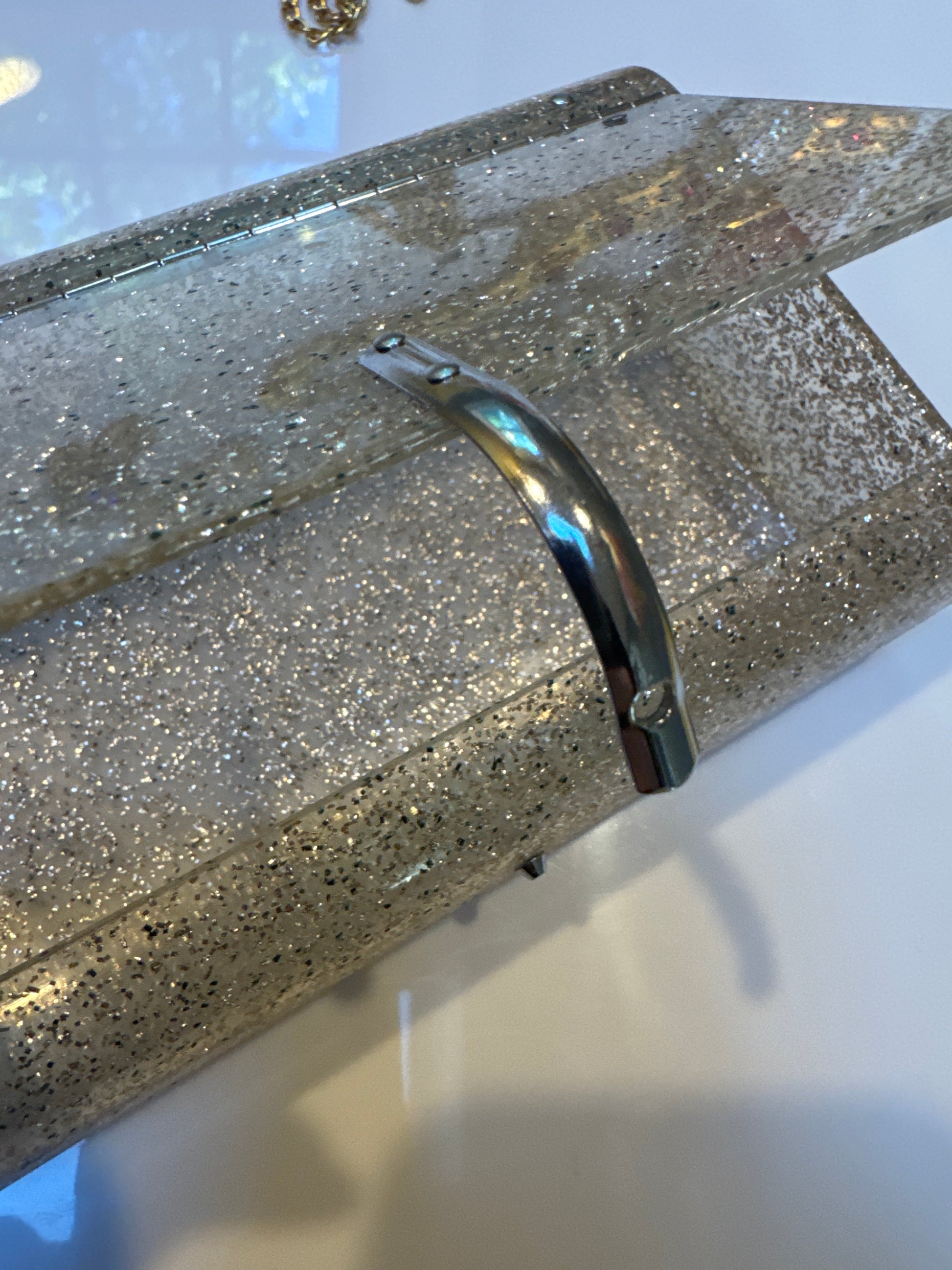 cool vintage 1960s lucite clear and silver confetti box/purse