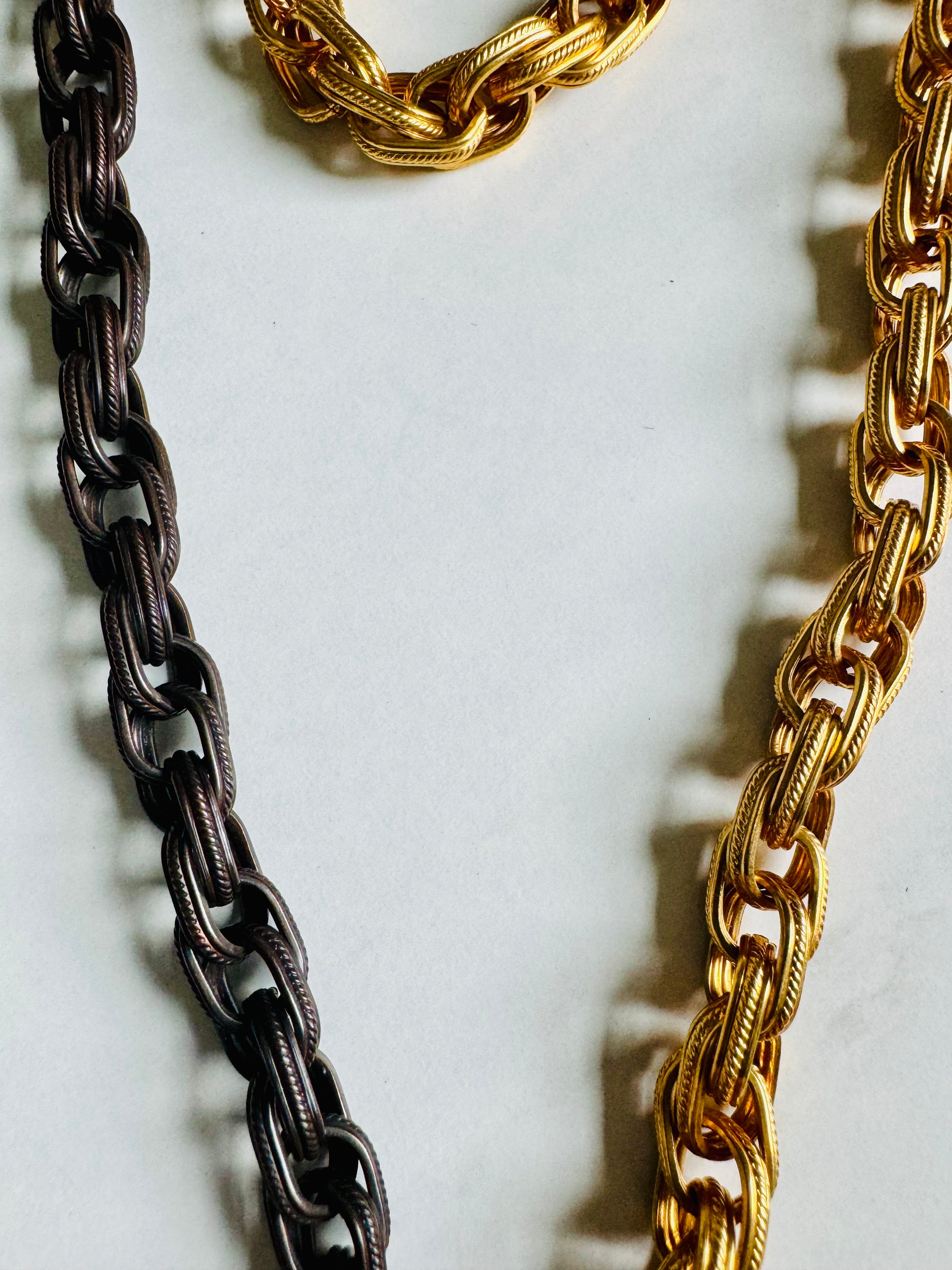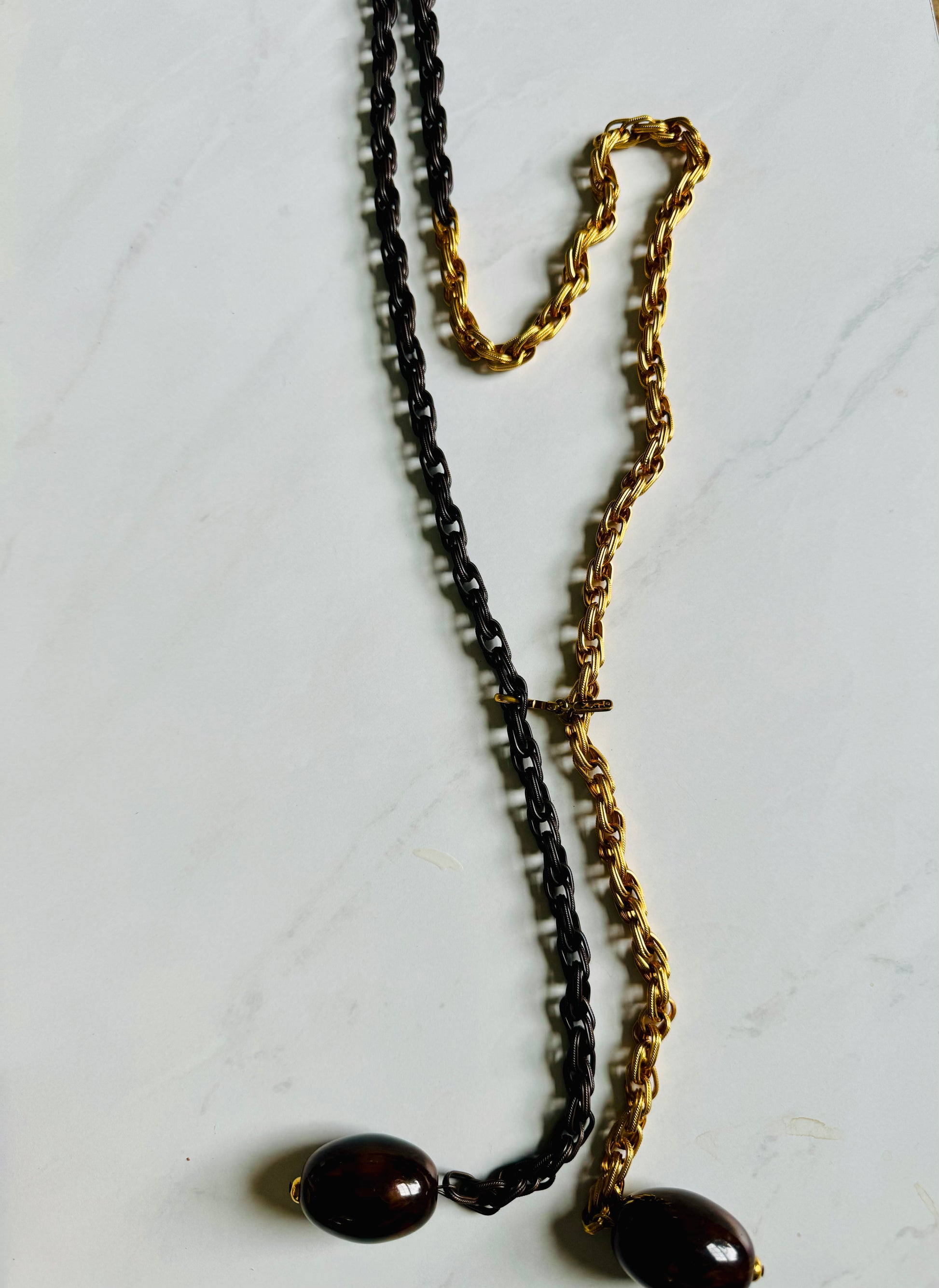 Gorgeous 1970s YSL necklace with rope chain Half gold tone, half brown. A collectors delight