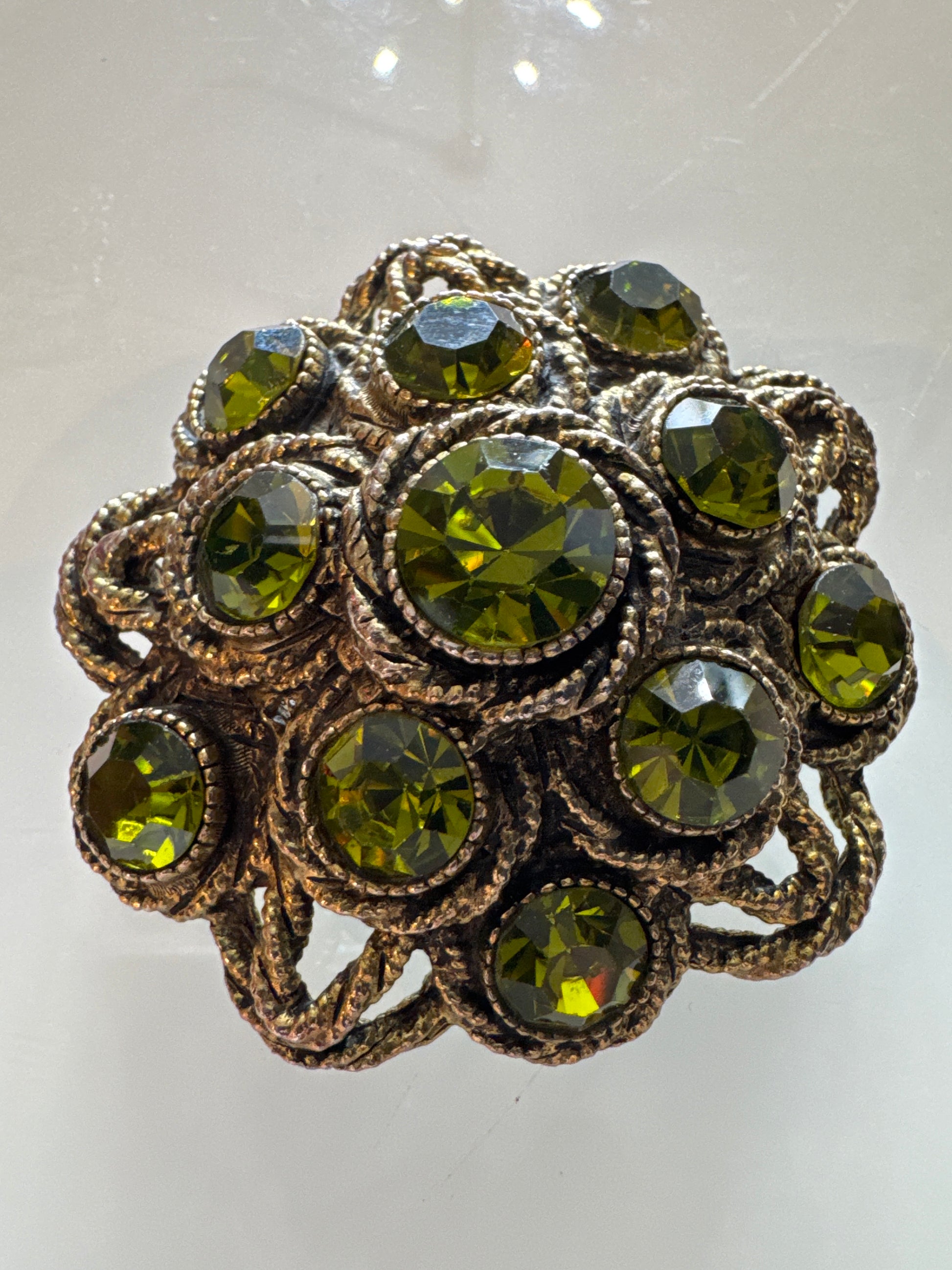Gorgeous signed 1950s HAR brooch with olive colored rhinestones