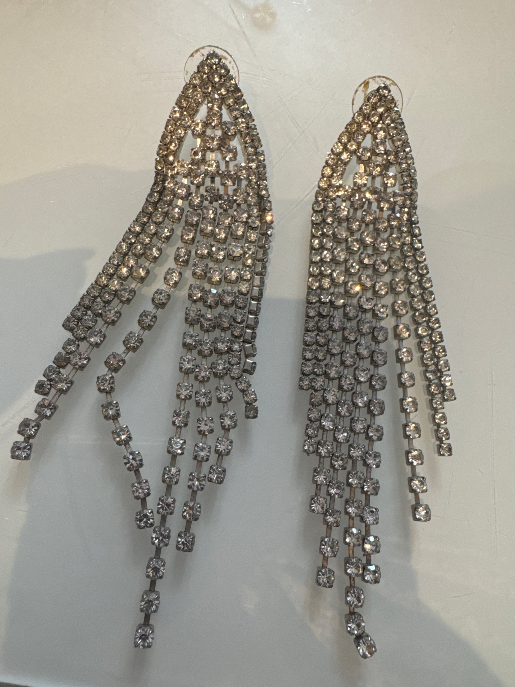 Major 1960s pierced rhinestone waterfall dangle earrings