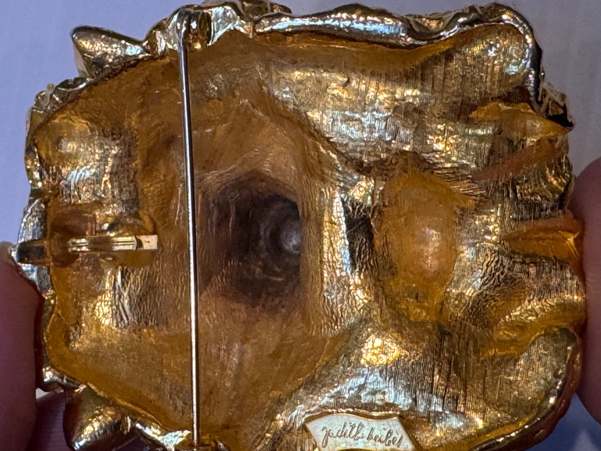MAJOR vintage collectible signed Judith Leiber 1980s Lionhead brooch with pendant clip