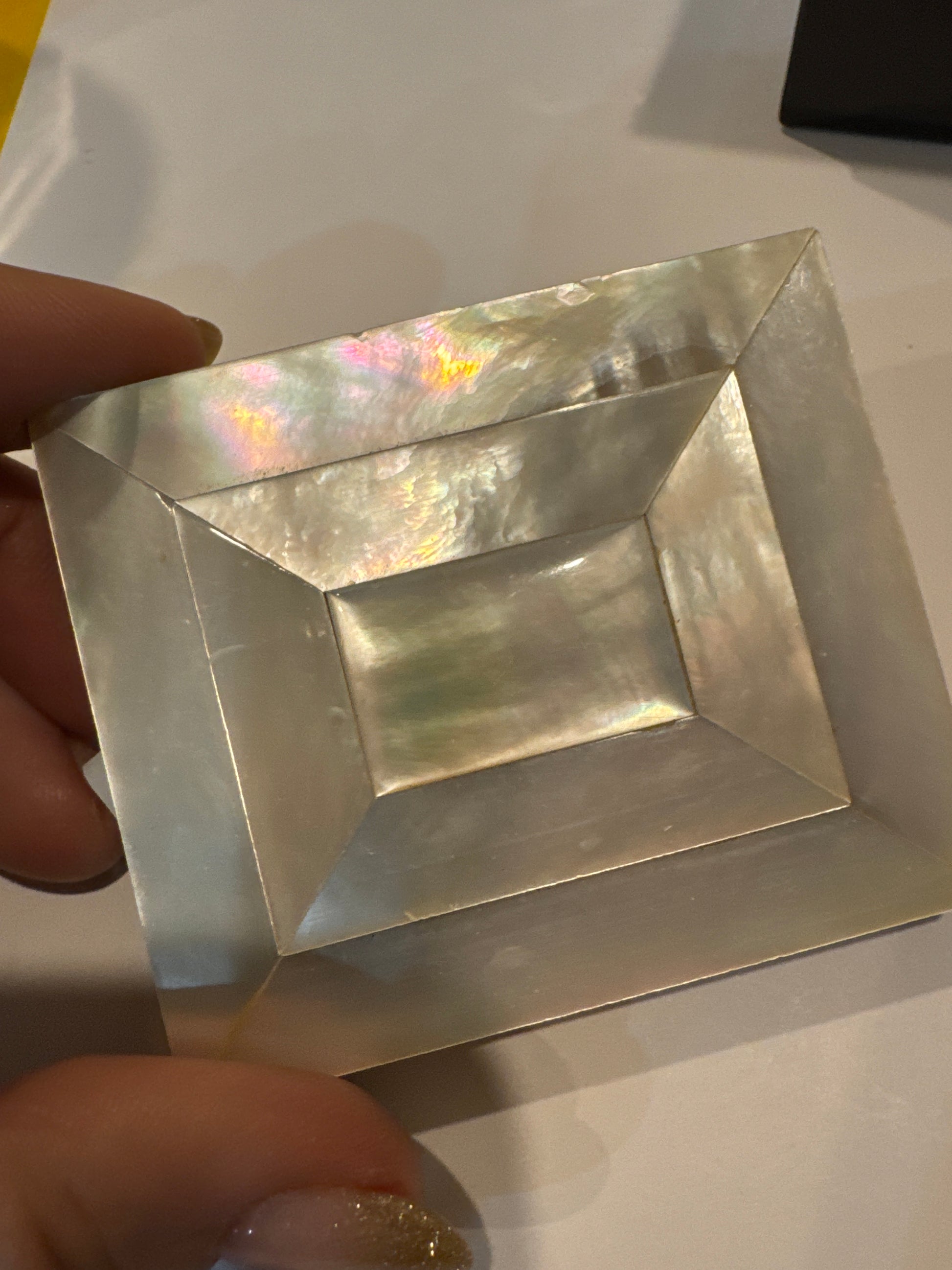Here is a one-of-a-kind 1955 engraved compact awarded to a Trim-Waist Beauty Contest Finalist — yes, that was a real thing in the 50s! Local pageants loved celebrating the perfect hourglass figure, and this engraved mother-of-pearl compact would’ve been presented like a trophy. It’s a glamorous little time capsule from the Marilyn era.