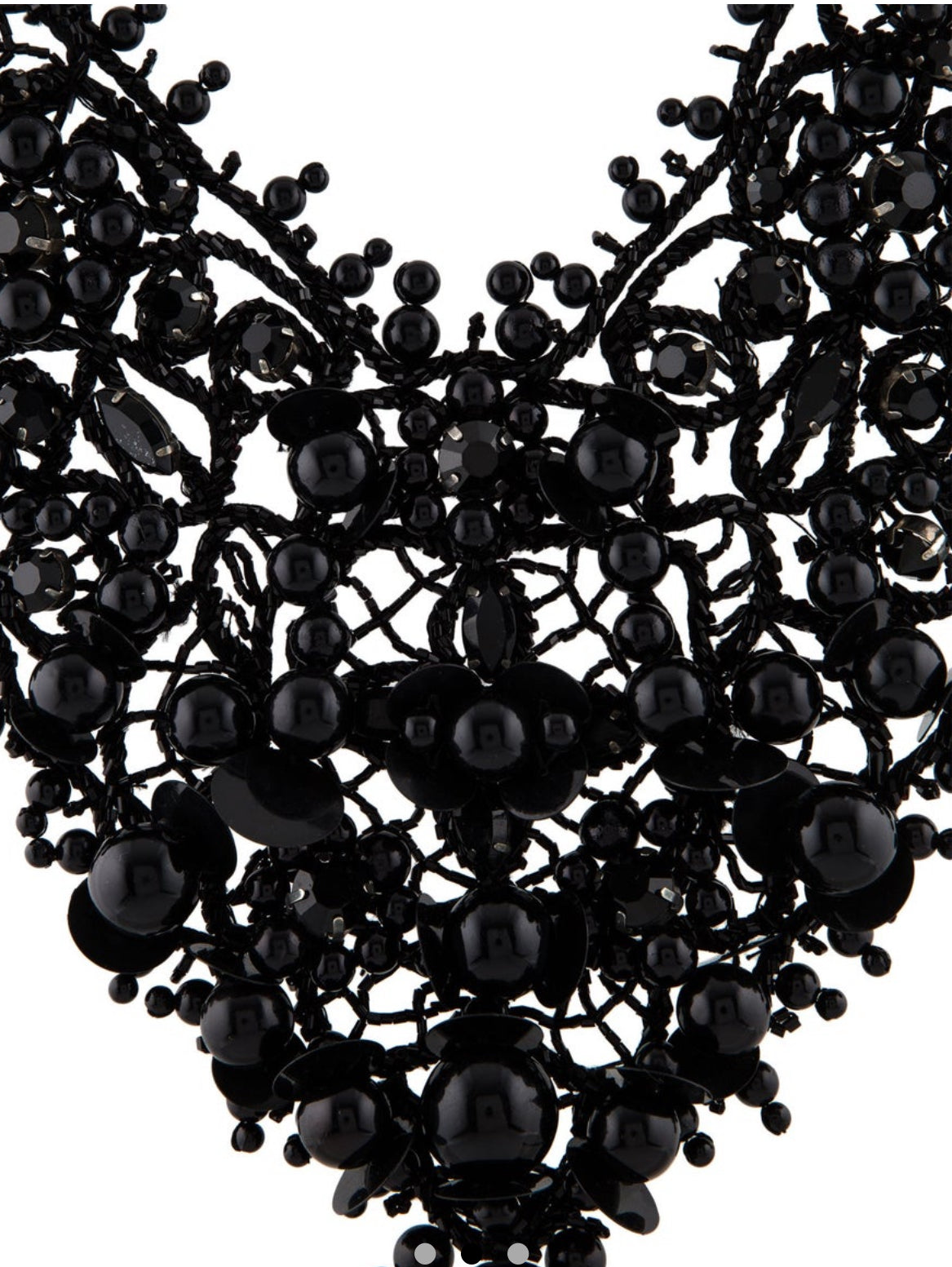 Never worn PRADA black sequin and bead bib necklace with silver tone chain and fastener. Comes in original box