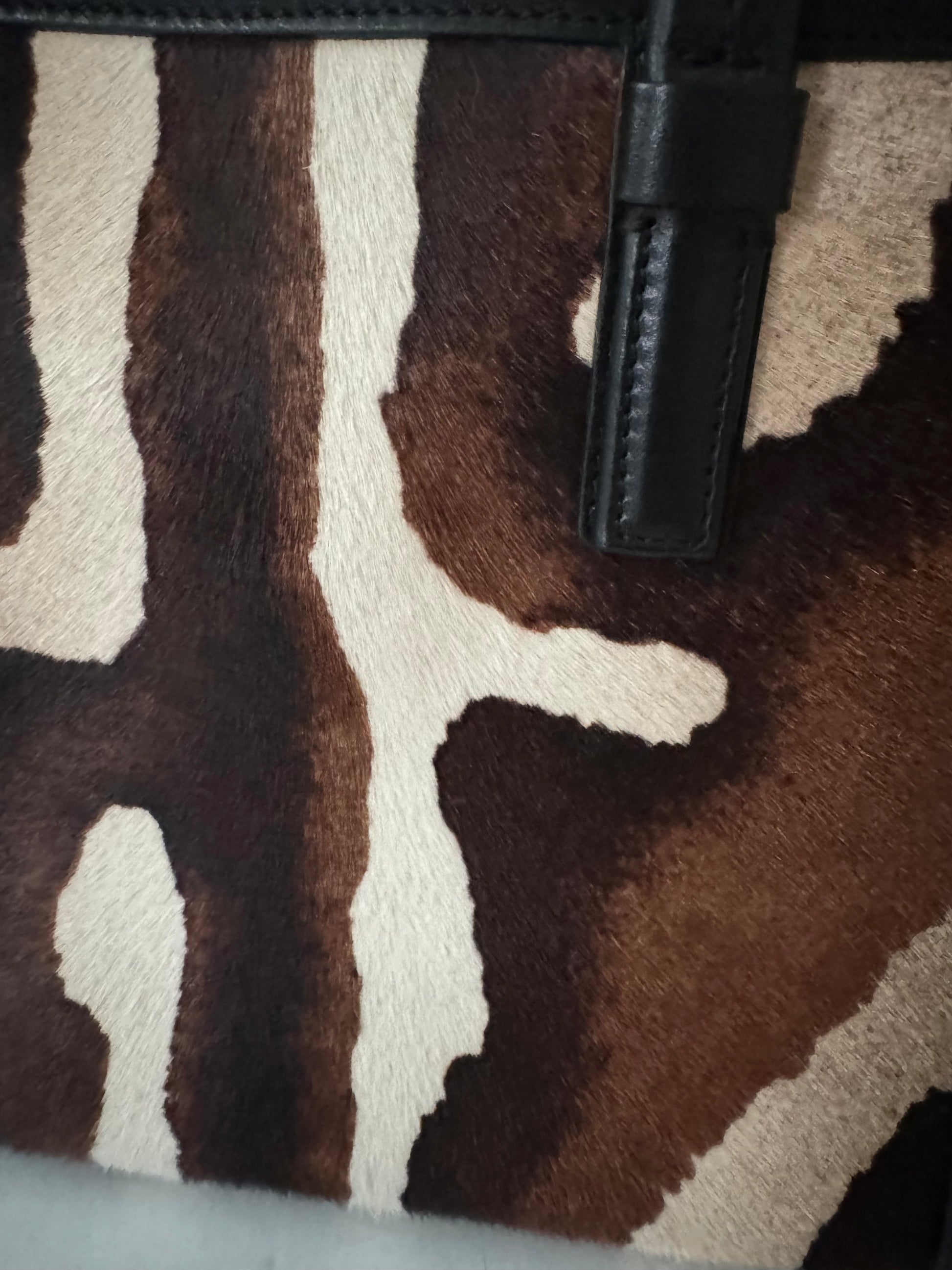 Pony hair and leather brown tone Ferragamo handbag with detachable shoulder strap
