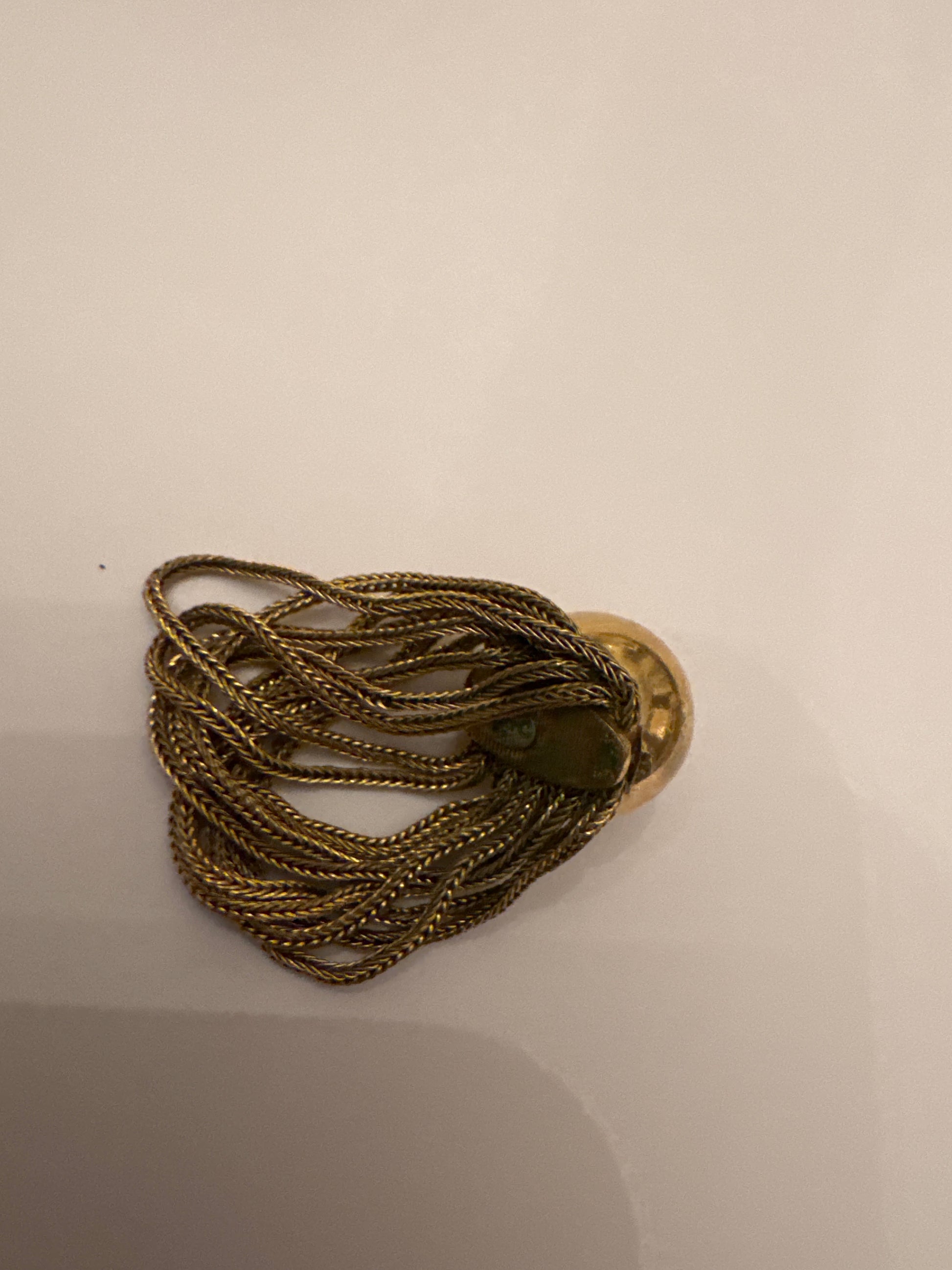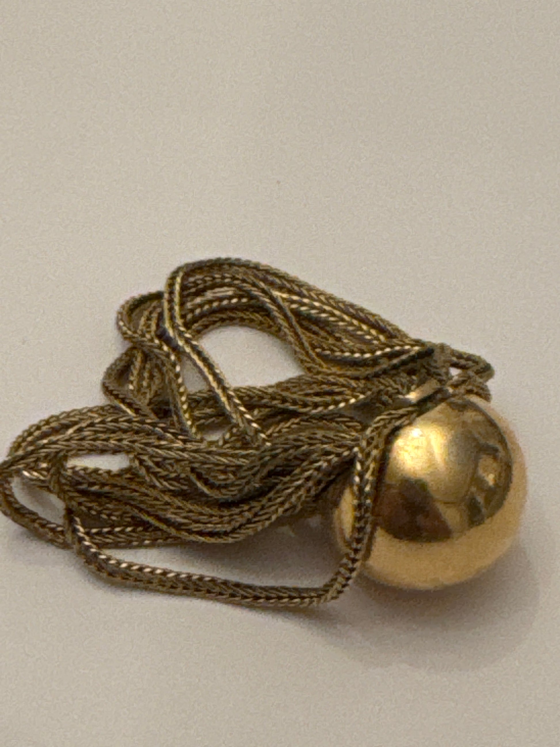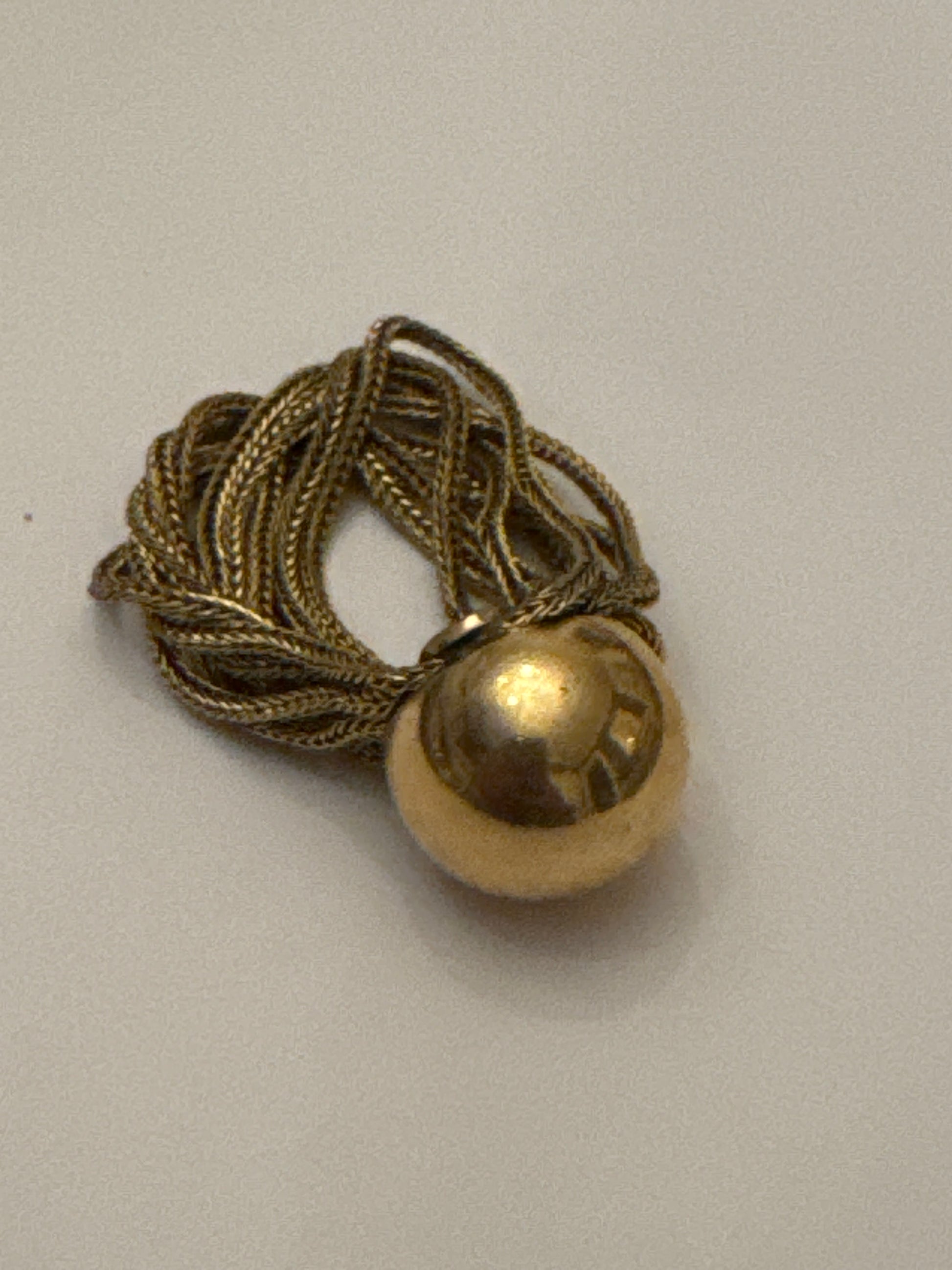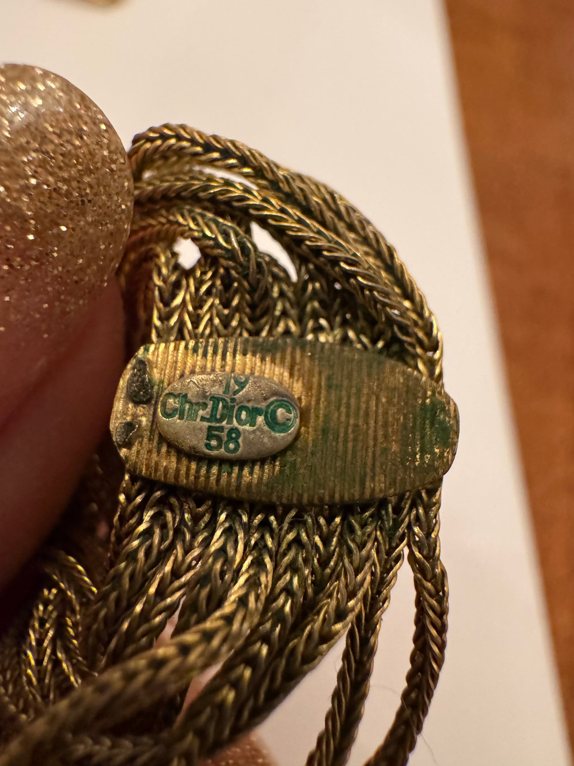 A spectacular 1958 Christian Dior couture-era ring featuring a sculptural gold bombé sphere wrapped in fluid braided chain drapery. Date-stamped ‘58,’ this piece was created during the earliest Yves Saint Laurent years at Dior, when the house embraced sculptural metalwork and couture-inspired movement. A rare, investment-level Dior jewel.