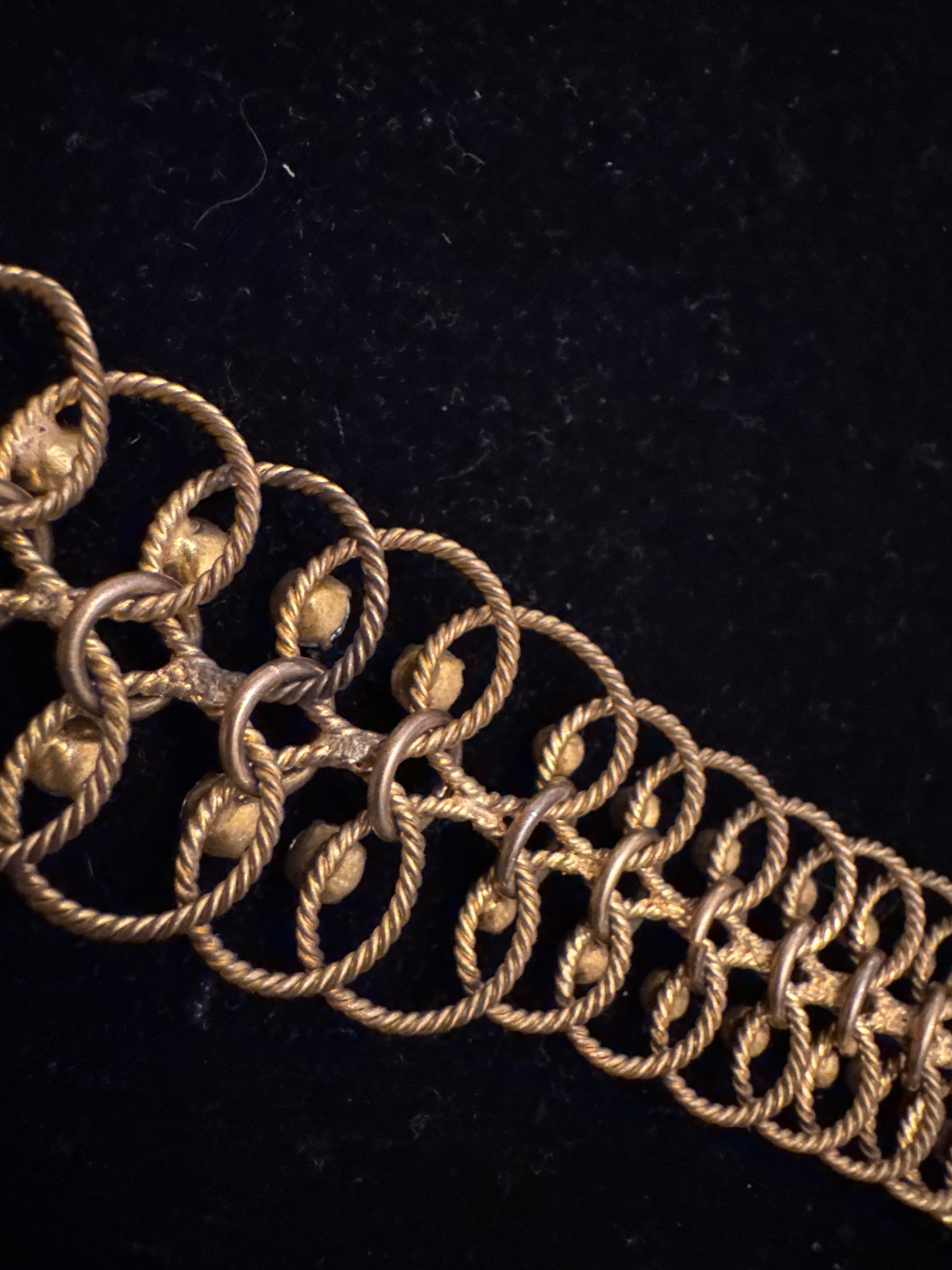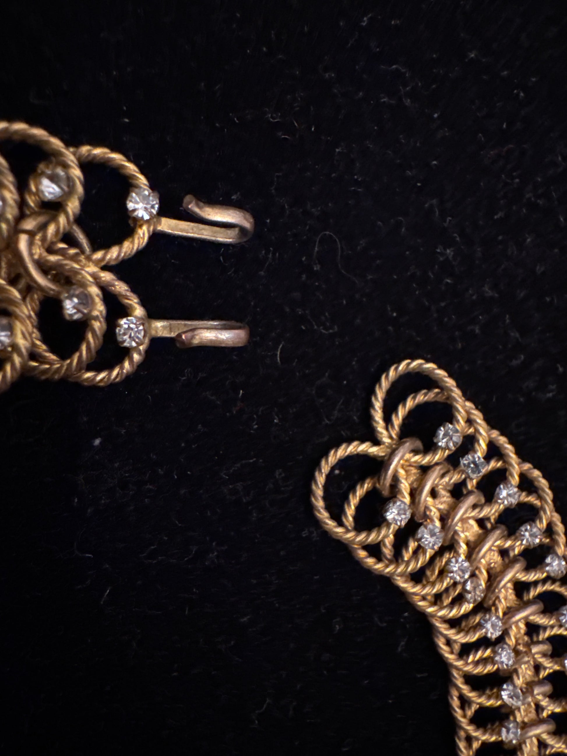 RARE vintage 1960s evening costume bib necklace. Notice the sparkling rhinestones and chainmail construction . France