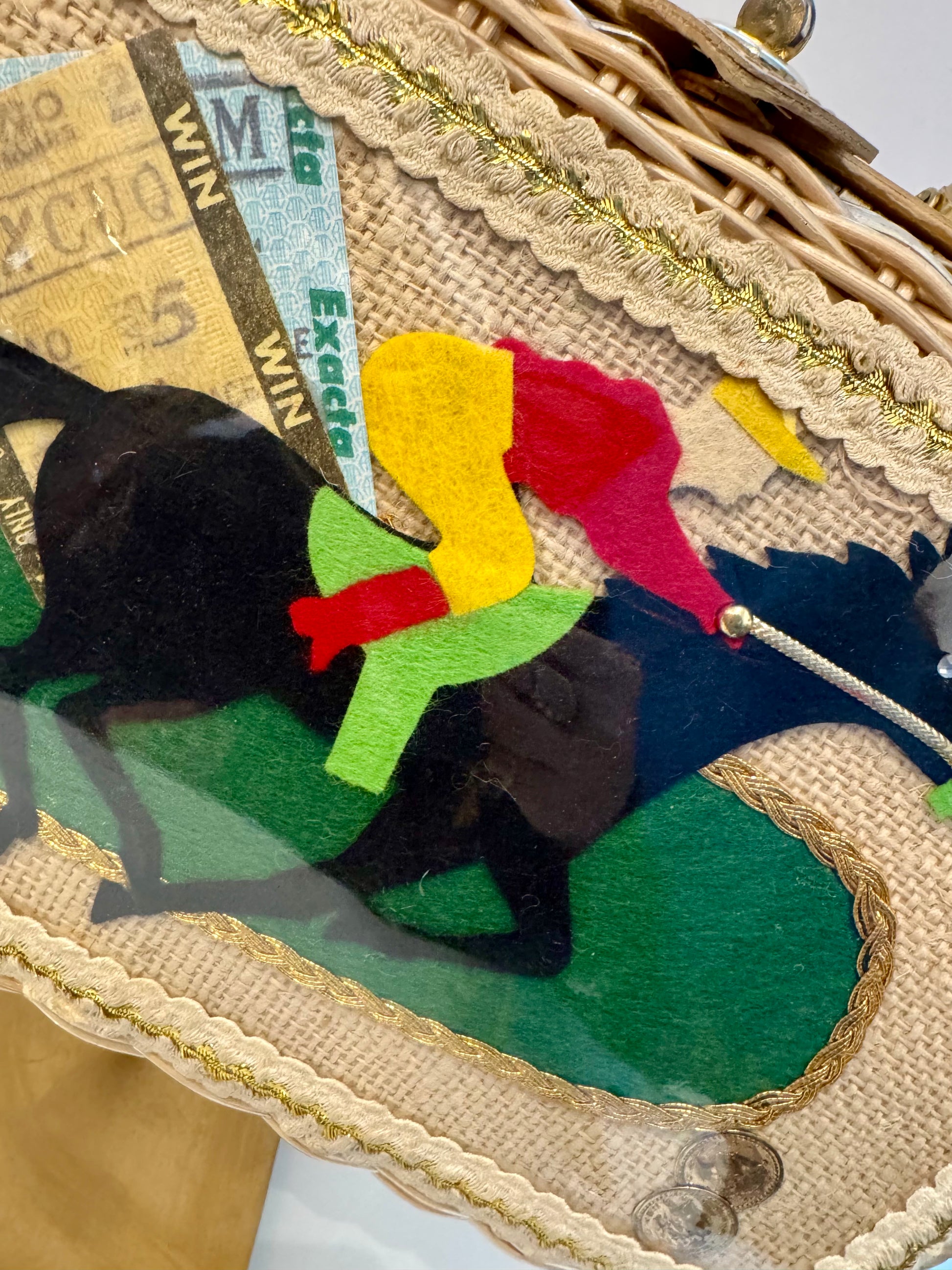 RARE! Vintage handmade wicker 1950s Day at the Races ~ bag for Belmont in great condition