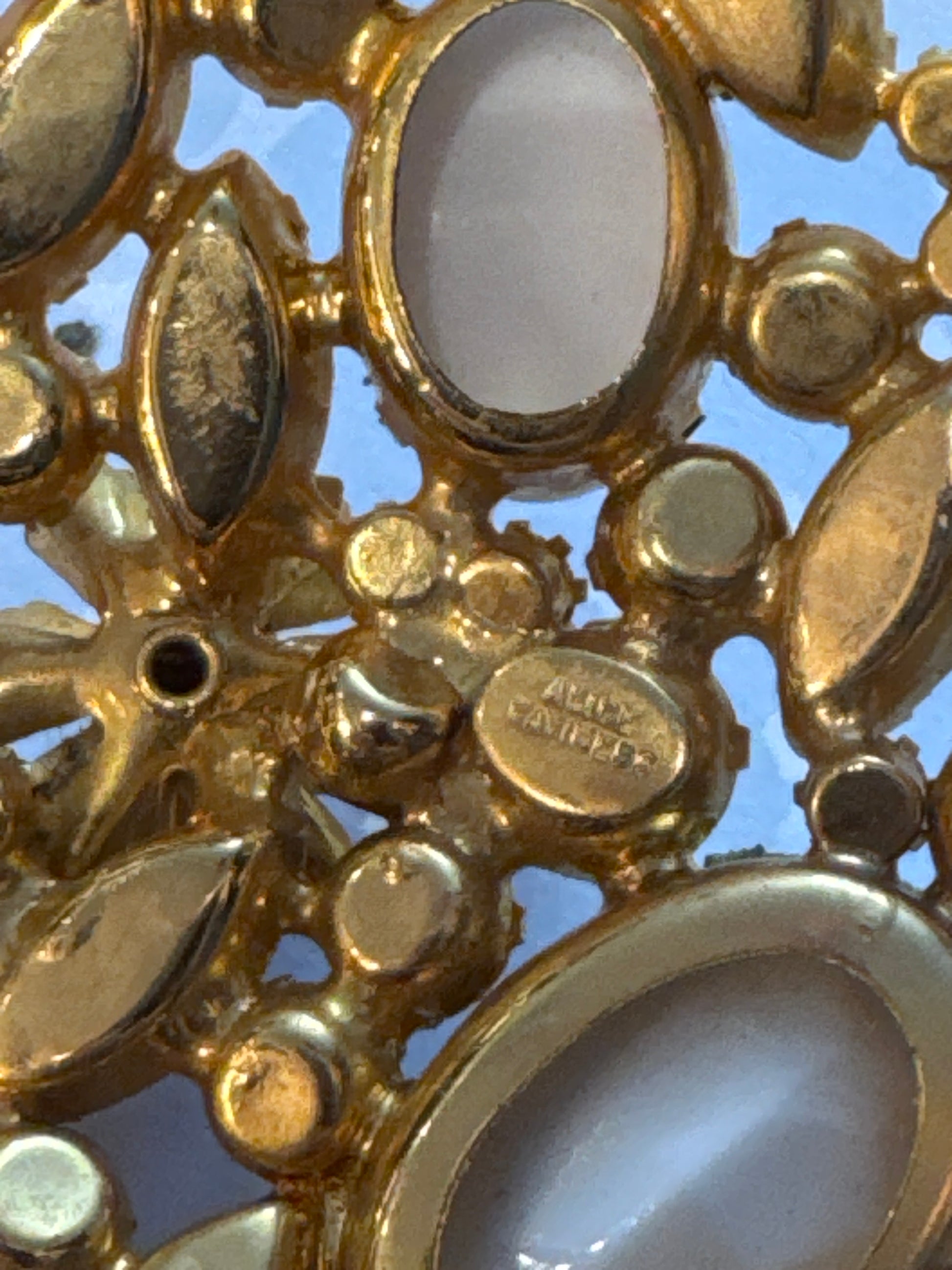 signed ALICE CAVANESS pendant necklace with milk, glass stones