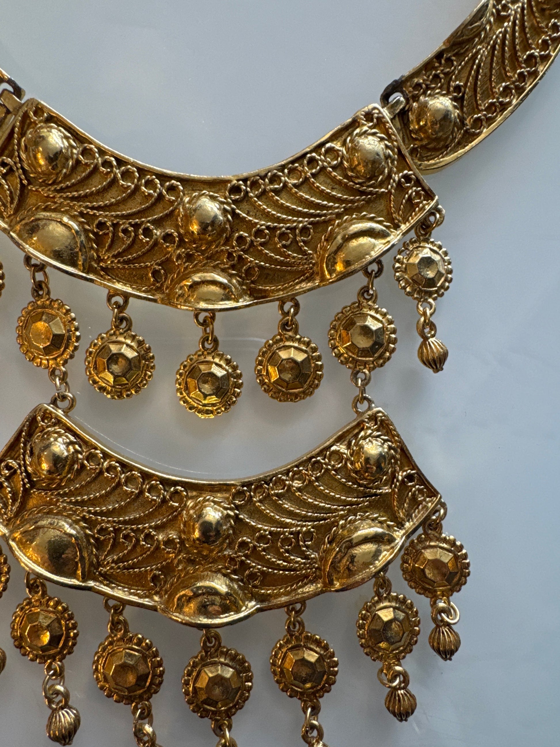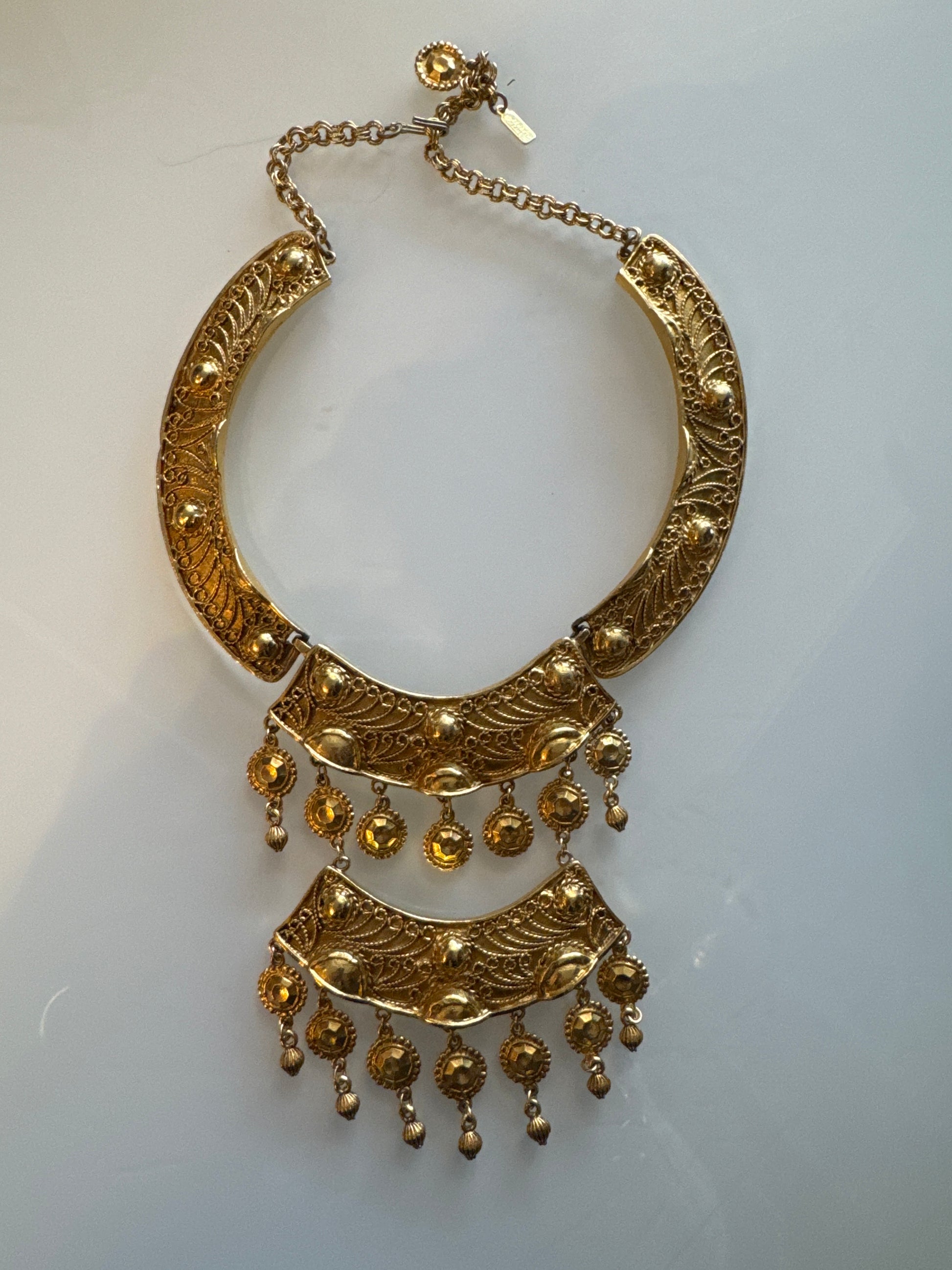 Spectacular vintage Kenneth Lane gold tone bib necklace