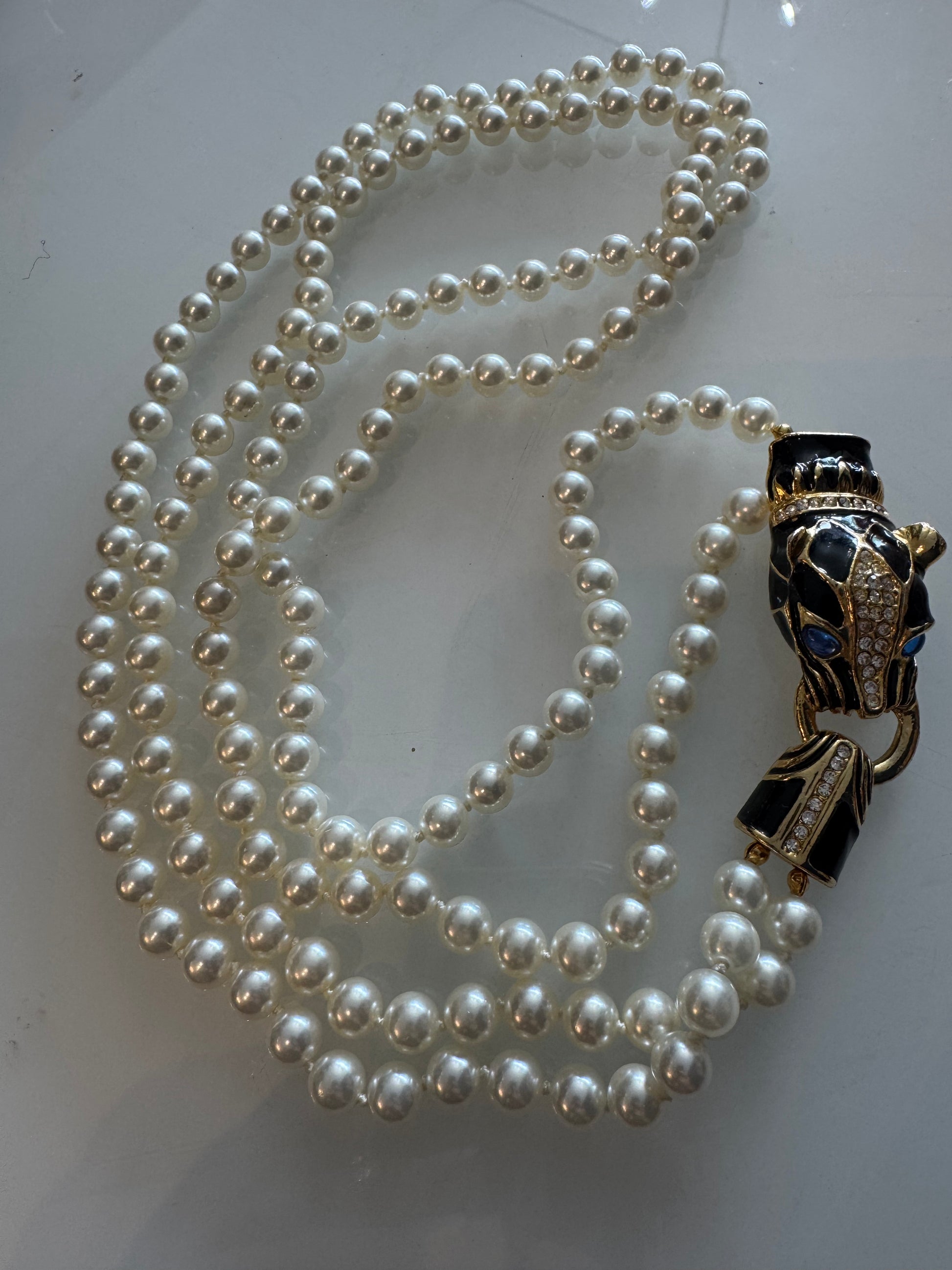 Stunning 1980s Park Lane pearl and cheetah double strand necklace