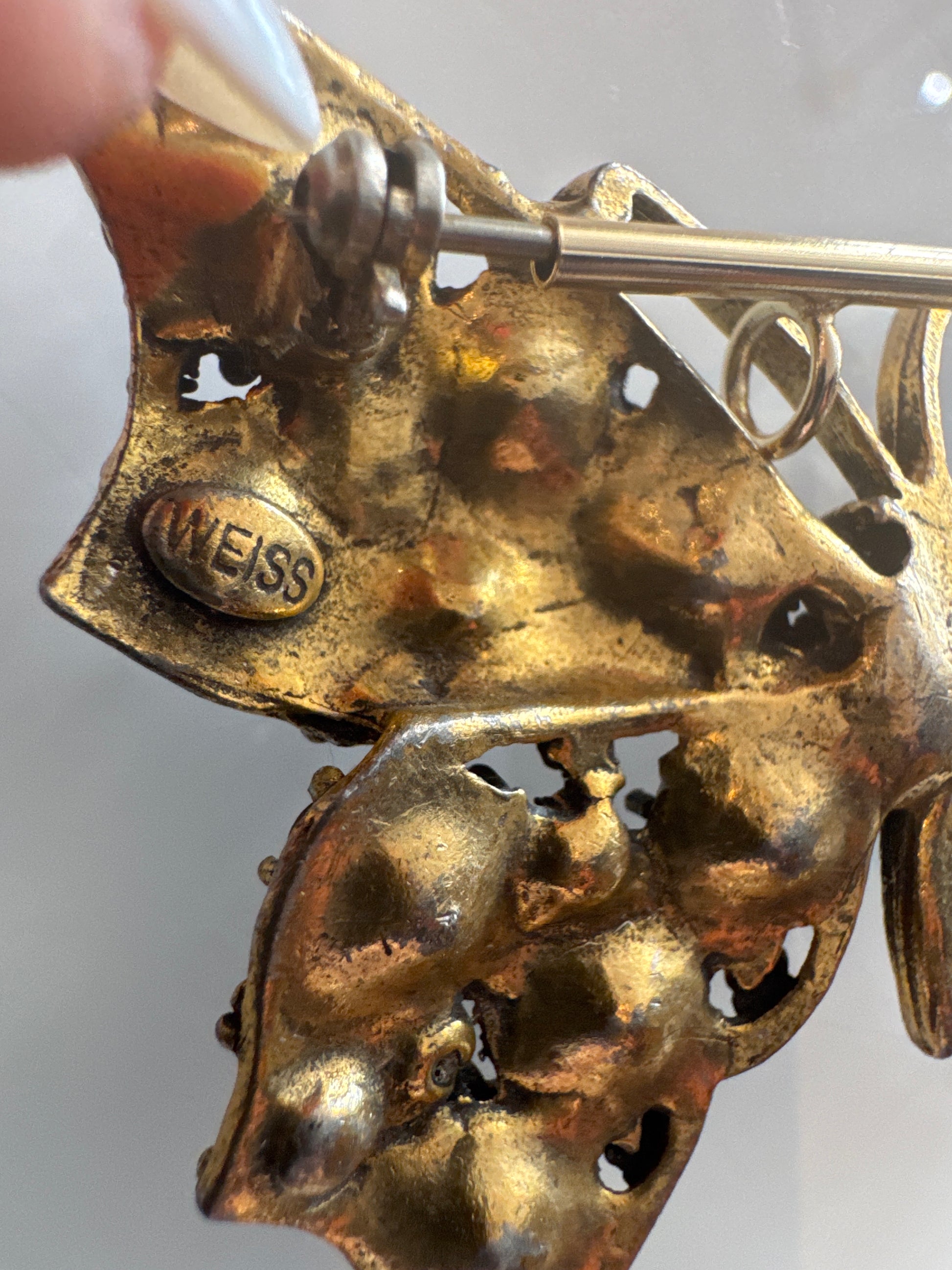 Stunning RARE vintage signed WEISS rivoli butterfly brooch
