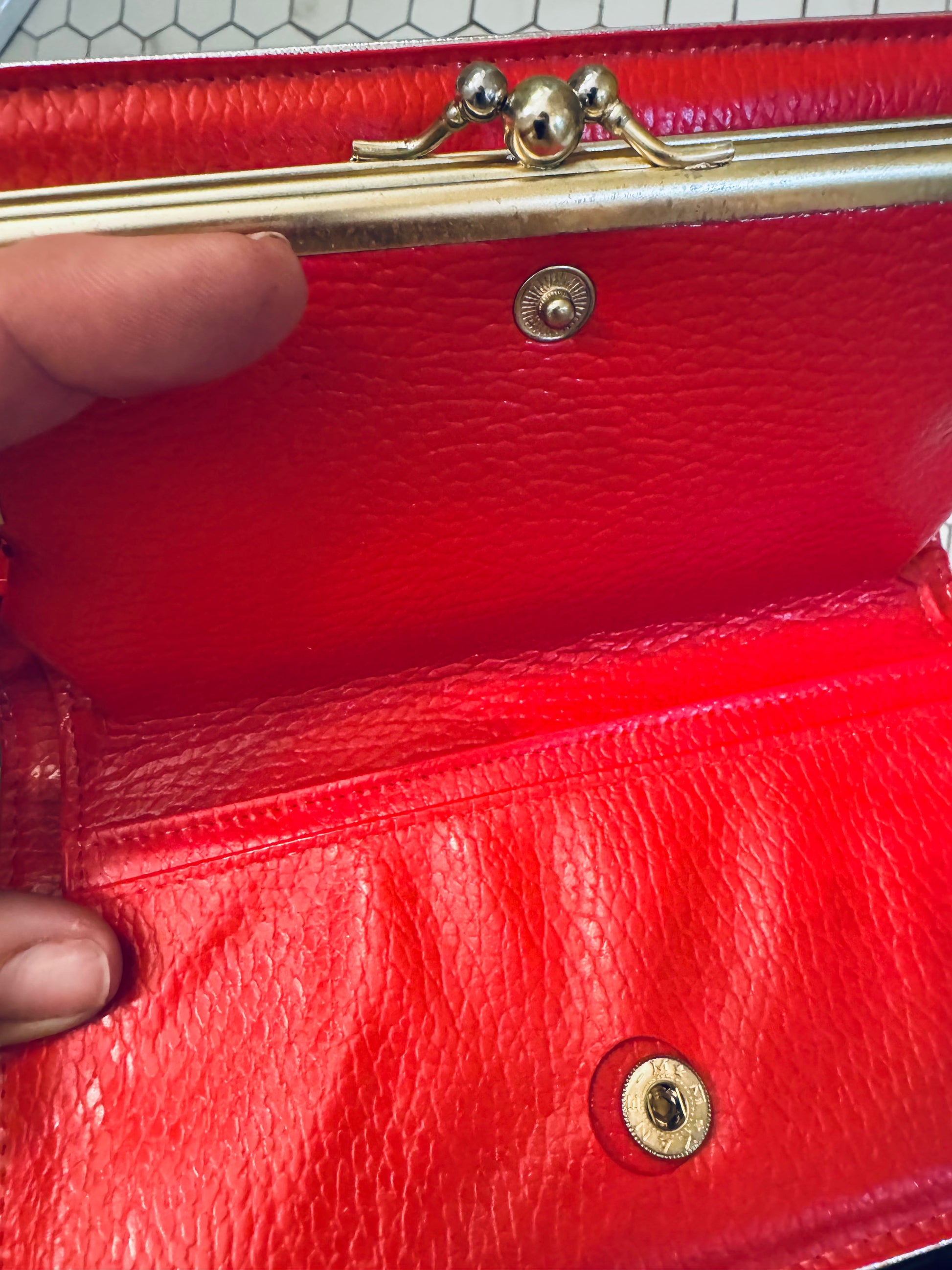 Vintage 1960s kiss lock silver clutch with red leather lining