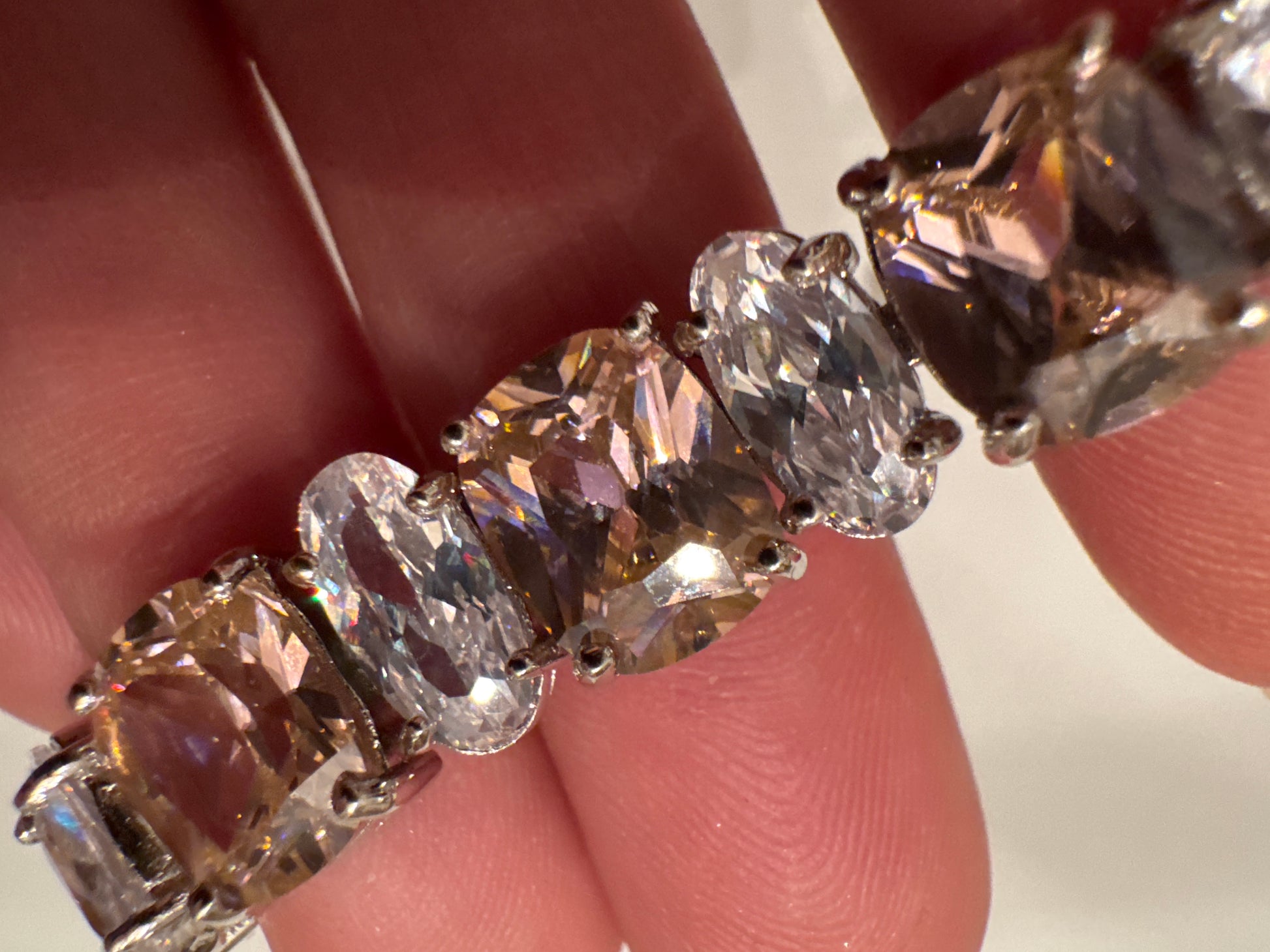 vintage 1970s Park Lane rhodium bracelet with rhinestones pink and clear