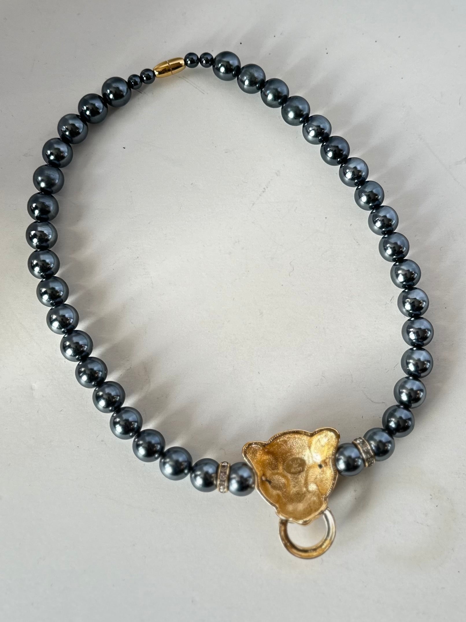 Vintage Kenneth Jay Lane for Avon Enamel & Rhinestone Jeweled Panther Beaded Necklace
