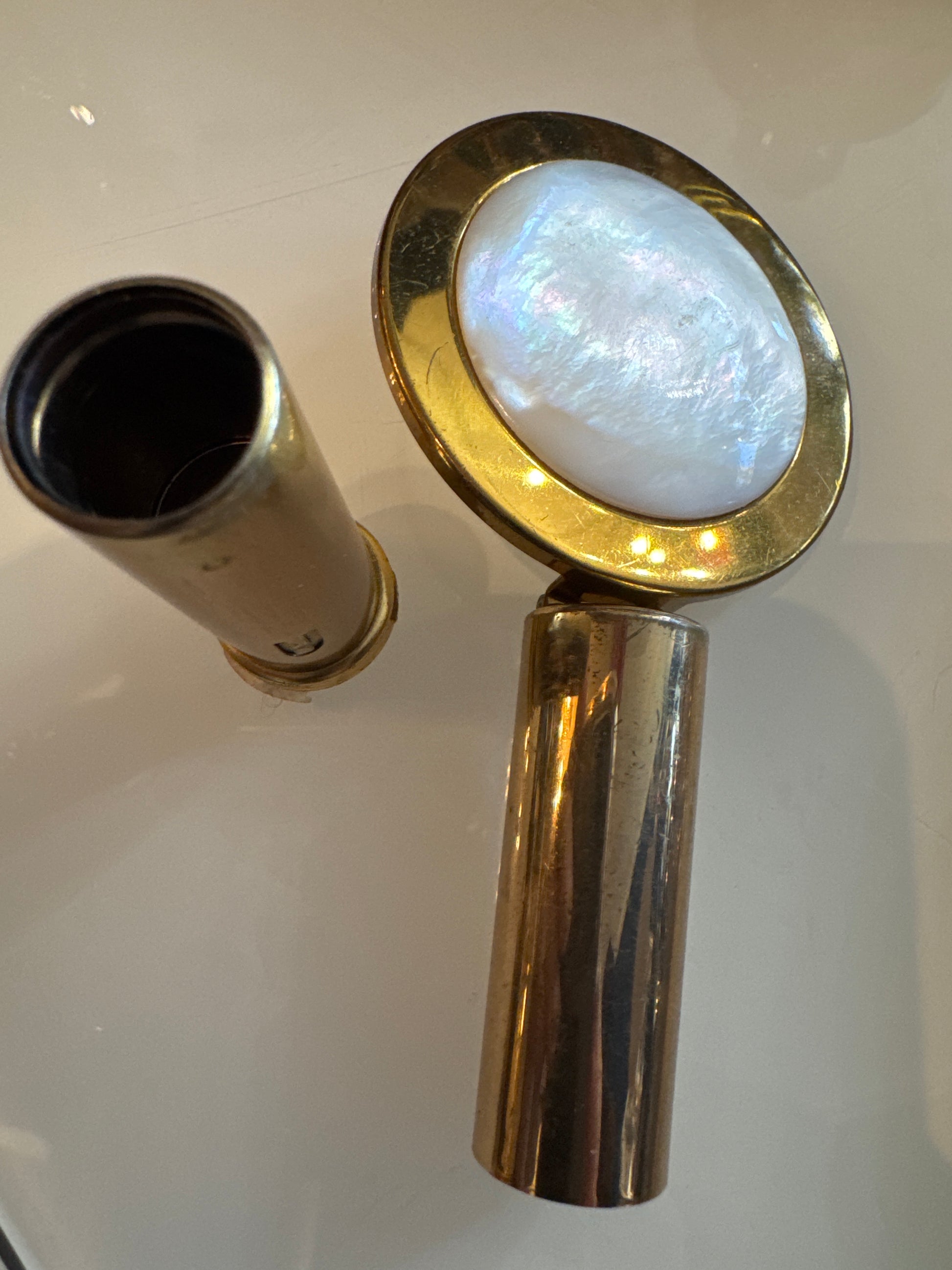 vintage refillable lipstick holder with mirror. Folds up.