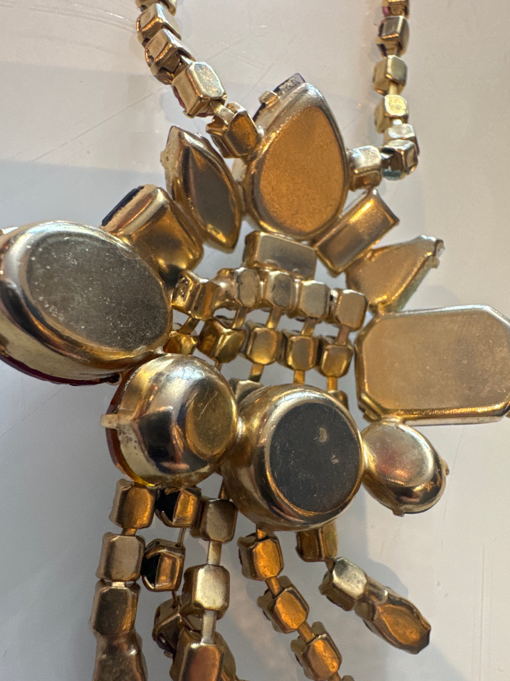 Wow Factor! 1950s rainbow colored rhinestone Juliana waterfall necklace